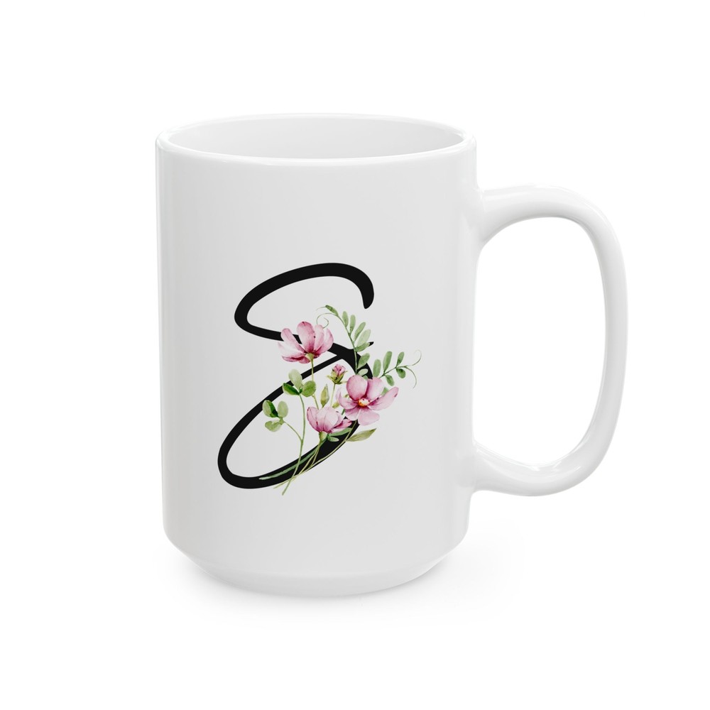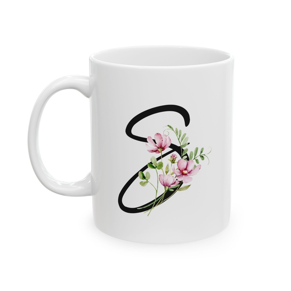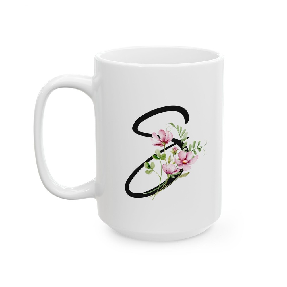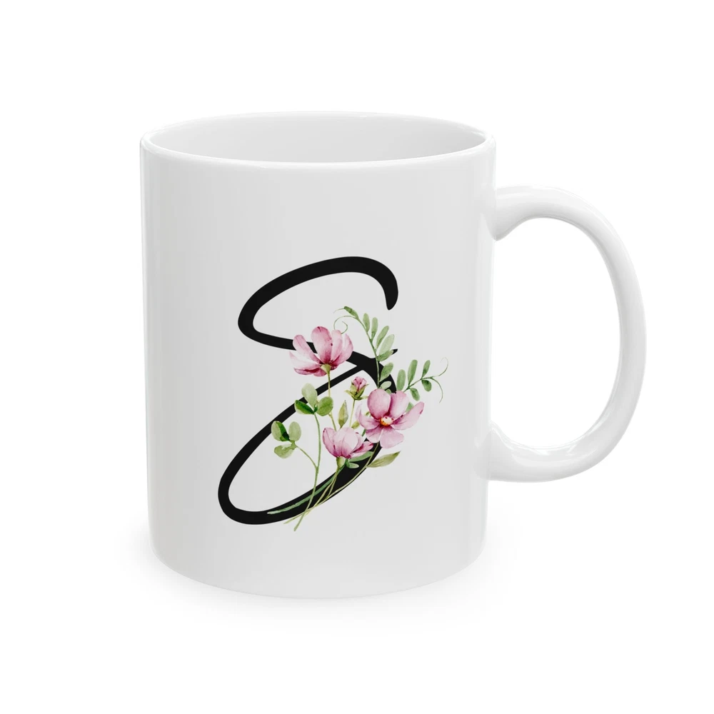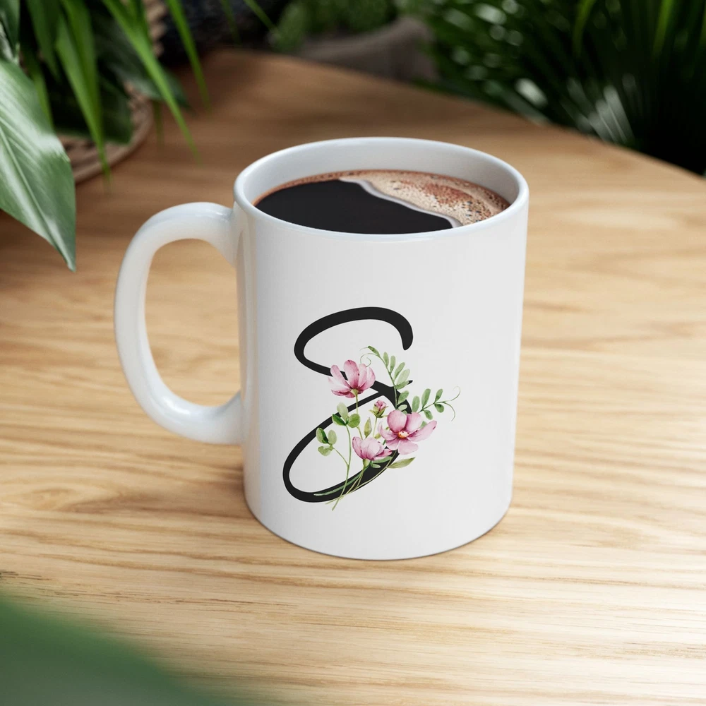 Floral Ceramic Mug with C Initial - Perfect Gift for Coffee Tea and Hot Cocoa Lovers