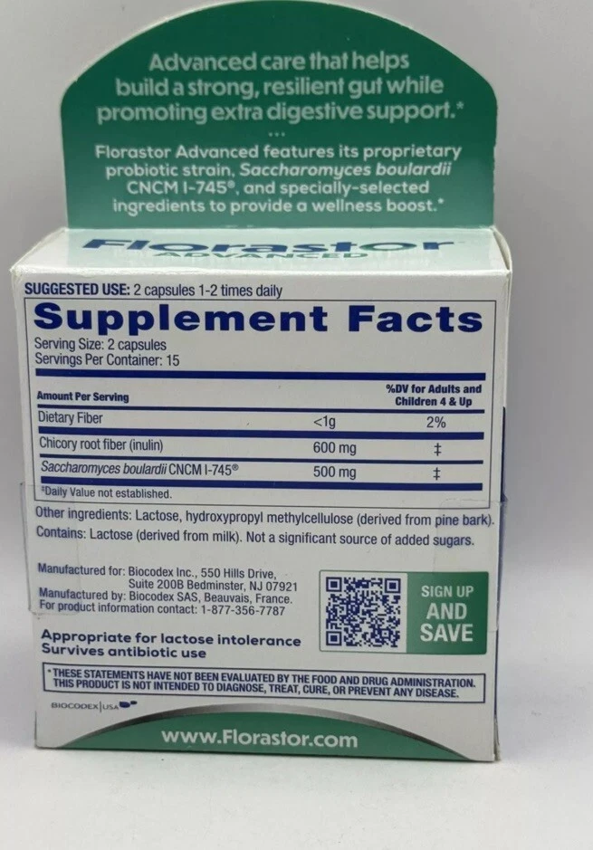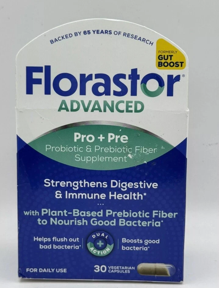 1- Florastor Advanced Gut Boost Daily Probiotic & Prebiotic Supp - 30 vegetarian capsules - expiration date of November 2026 - New - plant-based probiotic fiber two nutrition, good bacteria - for daily use - pro plus pre-probiotics and prebiotic fiber supplement - helps flush out bad bacteria - boost good bacteria - Gut boost - Florastor Advanced - Best offers are welcome