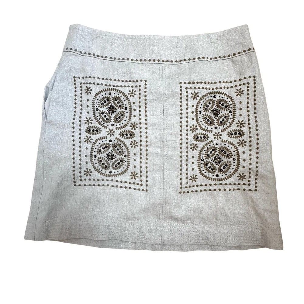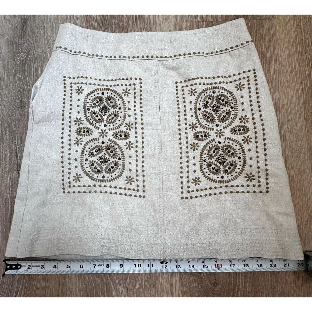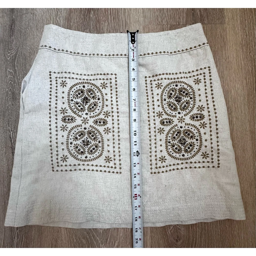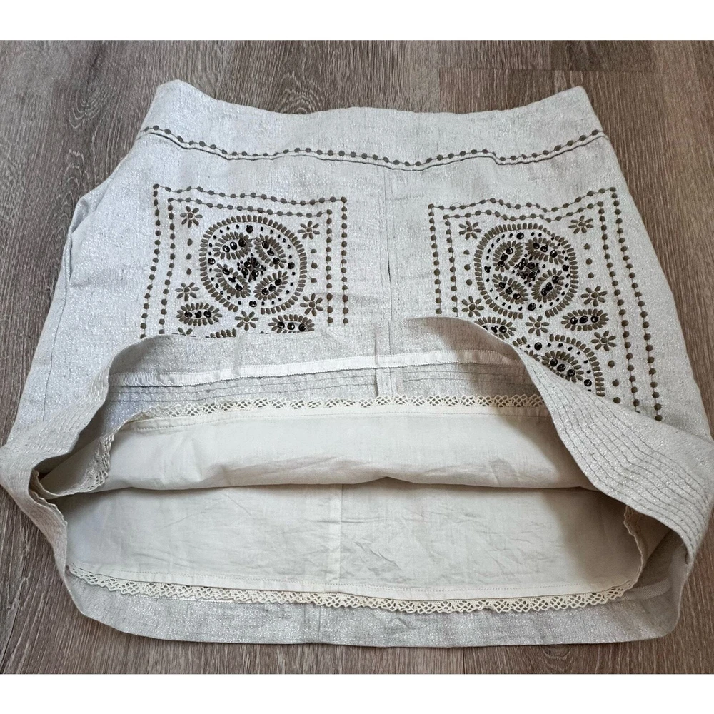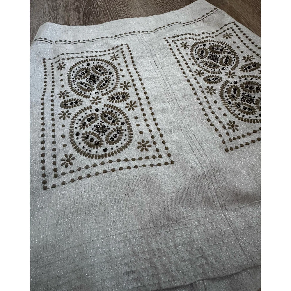 Floreat Athropologie|First Rays Embroidered Skirt|SZ 6 Preloved/Stunning Beaded Skirt. Please note that there is a small pull at the seam in the front that needs a small few stitches to be closed. Very subtle. Please see pictures for more details and or measurements. You should review all information in full to ensure satisfaction & knowledge of what it is you are purchasing. NOTE: Any damage or defects to product prior to sale will be shown in the photos. Will be packaged with care.