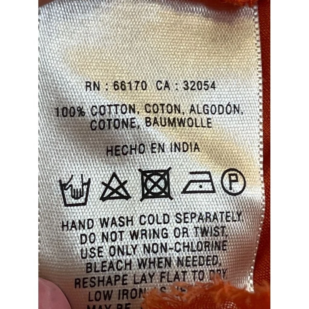 Great Pre-Owned Condition (see pics for details) Features: • Flaws: No Holes, stains, or tears - small mark - pic shown • Please see photos for measurements (in inches) • Smoke Free Home • Washing Instructions: Machine wash cold Size: M Super Fast Shipping: Ships out the same day or next business day! Style Profile: Everyday, Work Wear, Office, Business, Casual, Capsule, Bold, Career, Church, Choir, Resort, Statement, Classic, High Waist, Drape, Flowy, Solid, Knit Touch Fabric, Crochet, Embroidery, Boho, Peasant, Hippie, Y2K, Festival, Coachella, Stretch, Concert, Festival, Summer, Spring, Travel, Cruise, Orange, Versatile, Eclectic, Lined, Soft, Cozy, Comfortable, Mature, Pull On, Vintage, Antique, Lightweight, Year Round, Bomber, Curvy, Office, Professional, Art, Music, Festival, Country, Concert, Church, Teacher, School, Game Day, Preppy, Relax Waist, Side Slit, Beach, Pool Party, Cottage, Granny, Artsy, Resort, Country Club, Classic, Soft, Comfy, Cozy, Roll Tab, Coverup, Travel, Vacation, Kentucky Derby, Weekend Wear, Feminine Detail, Statement Making Look, Trendy, Timeless, Ease, School Pictures, Family Pictures, Outdoors, Hiking, Walking, Active, Performance, Animal, 4-H, Themed Party, School Party, Event, Party, Special Occasion, Date Night, Girl’s Night, Guys’ Night, Everyday, Capsule, Minimalist, Basic, Staple, Wardrobe, Flounce, Feminine, Cowgirl, Honky Tonk, Sheer, Mesh Item sprayed disinfectant before folded and stored in plastic bag.