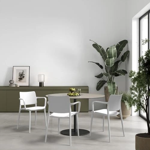 Return Policy Fast Delivery Trusted seller Florence Modern Stacking Plastic/Resin Patio Dining Armchair Indoor/Outdoor, Pool, Patio, Kitchen, Restaurant (Set of 2), White Product Description Eco-Friendly Outdoor Seating: Our chairs, crafted from durable Glass Fiber Reinforced Polypropylene, offer sustainable luxury for any setting. With the ability to stack up to 7 high, they're a perfect fit for patios, decks, gardens, and commercial spaces like restaurants and hotels. Designed to withstand diverse weather conditions, they promise year-round enjoyment and easy storage solutions. No-Fuss, Pre-Assembled Comfort: Our maintenance-free chairs feature a wipe-clean surface for effortless care and come fully assembled for immediate use. With protective non-scratch leg caps, they're an ideal upgrade for both bustling commercial spaces and cozy home environments. Stylish Stability & Weather-Proof Design: Merging comfort with a chic soft pastel finish, these chairs are a stylish addition to any outdoor dining area. Fitted with non-skid rubber caps for unmatched stability and crafted to be UV and weather-resistant, they promise lasting beauty and suitable for all seasons. Please note: We strive for our digital images to be as accurate as possible. However, due to variations in computer monitors, actual colors may vary slightly. Clean with mild detergent and a soft, damp cloth. Avoid abrasive chemicals. Simply use soap and water; hose down if necessary, and wipe with a wet cloth. Do not use strong liquid cleaners, bleach, or ammonia. Shipping Returns Payment Shipping Shipping is FREE to all addresses other than APO/PO boxes in the lower 48 states. All our stock ships from US-based warehouses. Shipped via USPS or UPS (depending on location and package weight) Unless stated otherwise, all orders will ship within 24-72 hours of your payment being processed. Check our feedback to see the great reviews of FAST shipping we offer. Returns Seller does not accept returns Payment We currently accept payment via eBay managed payments only. Once payment is cleared, we will dispatch your shipment within 1-3 business days. Please refer to the "Shipping" tab for more information regarding shipping speed to your destination.