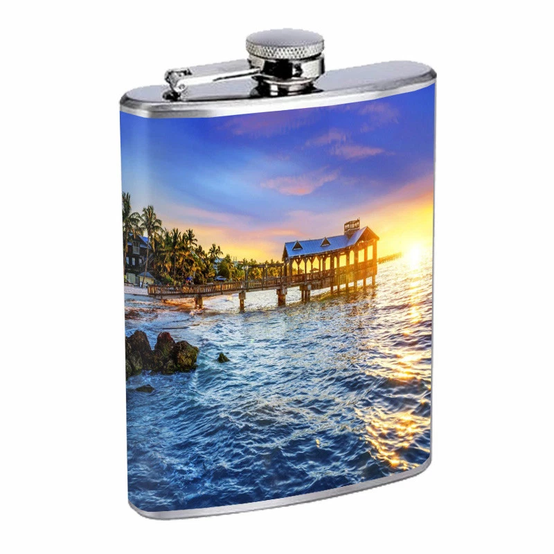 Florida Hot Spots Keywest D4 Flask 8oz Stainless Steel Hip Drinking Whiskey