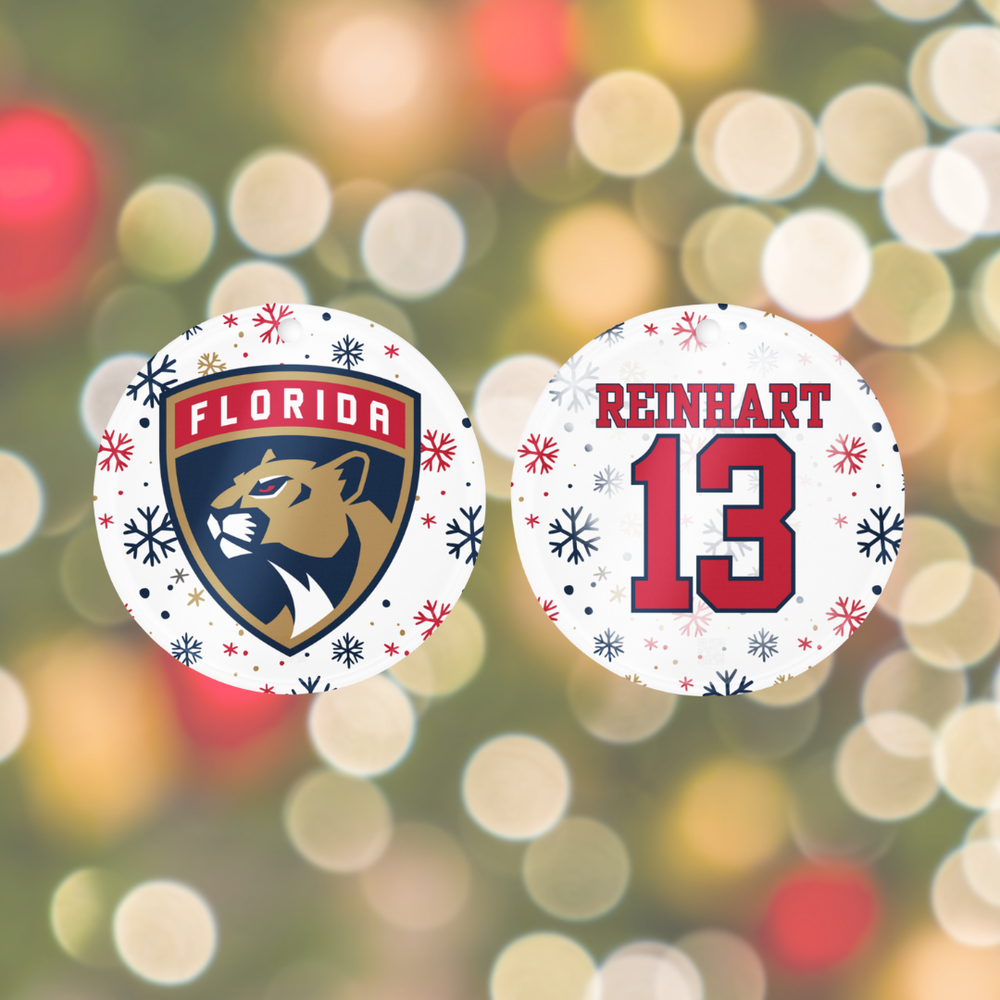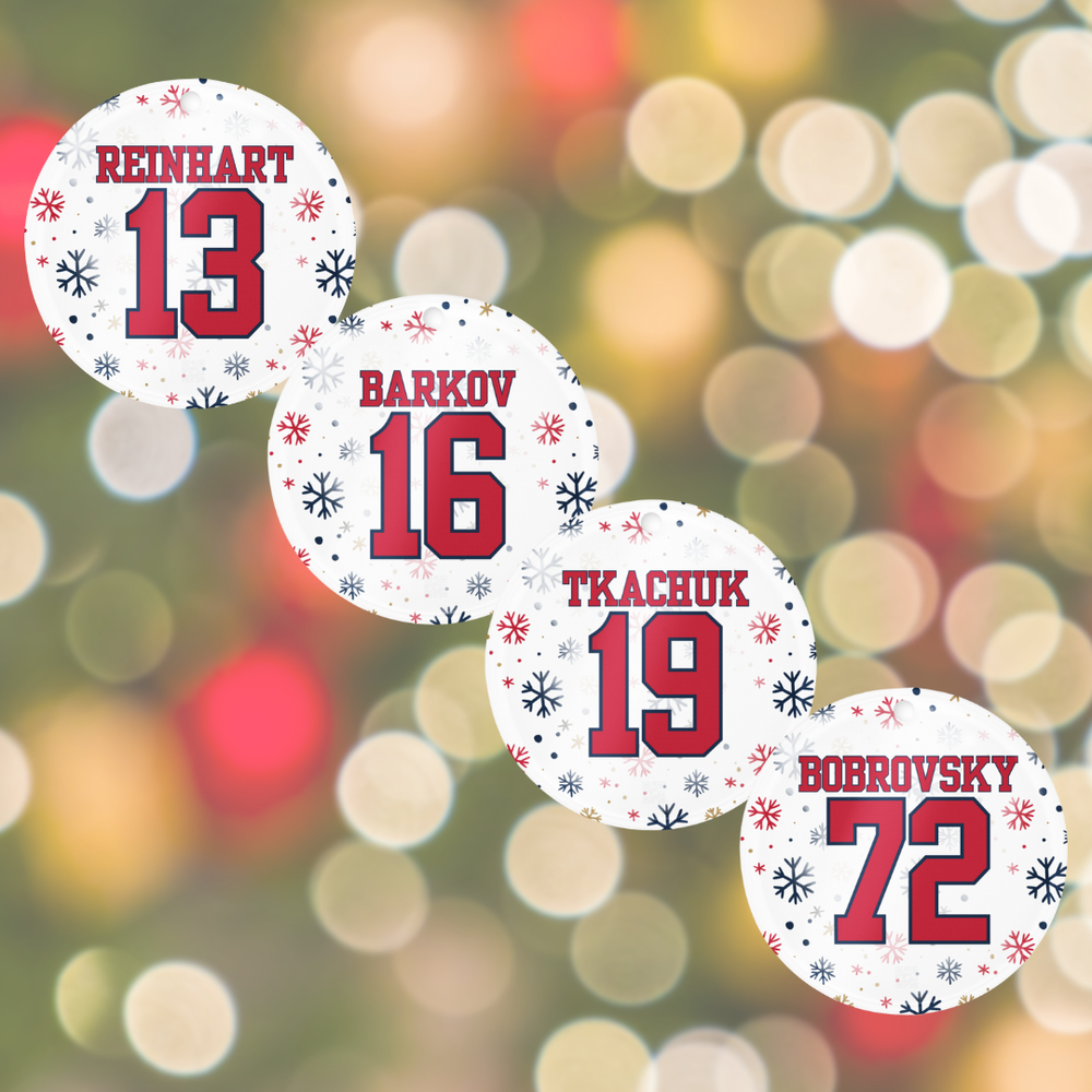Celebrate the holiday season with this exclusive set of 4 acrylic Christmas ornaments featuring the iconic Florida Panthers logo and four of the team’s most legendary players: Aleksander Barkov, Matthew Tkachuk, Sam Reinhart, and Sergei Bobrovsky. These high-quality, two-sided printed ornaments are designed to add a touch of hockey spirit to your Christmas tree. Product Features: Set of 4 Ornaments: Includes stunning designs of Barkov, Tkachuk, Reinhart, and Bobrovsky. Two-Sided Printing: Each ornament showcases vivid, full-color graphics on both sides, capturing the essence of your favorite Panthers players. Durable Acrylic: Crafted from premium acrylic material, these ornaments are built to last year after year. Perfect for Fans: A must-have for any Florida Panthers fan looking to bring some hockey magic into their holiday décor. Gift-Ready: Comes packaged in a gift box (color varies based on market availability), making it the perfect present for hockey enthusiasts. Hanging Rope Included: Each ornament is equipped with a hanging rope for easy display on your tree or around your home. Bring the excitement of the ice to your Christmas celebration or surprise a Panthers fan with the ultimate holiday gift!