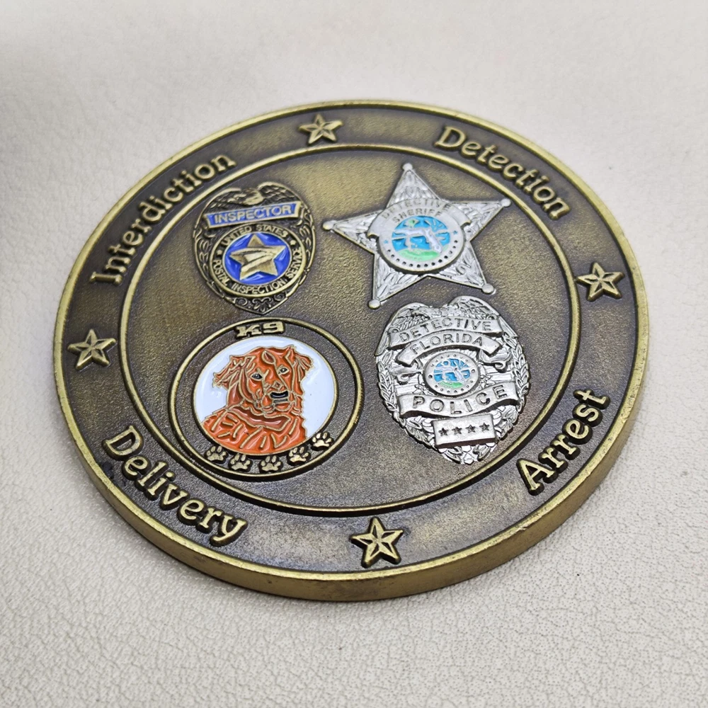 TITLE: Florida Police Department Drug Interdiction Challenge Coin SIZE : Measures Approx 1.98" Used coins are inevitably flawed please see pictures PAYMENT : We support multiple payment methods and ship within 5 days of payment SHIPPING : We offer free shipping, and your purchase will be carefully packaged and sent to you with tracking information through eBay SERVICES : You can contact us at any time if you have any questions, We will get back to you as soon as possible to solve your problem If you are not satisfied with your purchase for any reason, Please contact us before leaving neutral or negative feedback and we will solve the problem properly for you