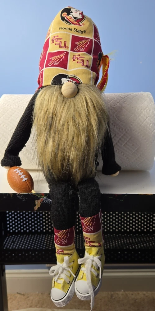 Show off your team spirit with this Florida State University Gnome, perfect for any fan of the Seminoles. This unique and fun collectible features the iconic team colors and a playful design, making it a great addition to any sports memorabilia collection. Whether you're a die-hard fan or simply appreciate the quirks of college sports, this Gnome is sure to bring a smile to your face. Represent your favorite team in style with this officially licensed Florida State Seminoles Gnome, perfect for game day or any day. This fun and functional piece of fan apparel is a must-have for any dedicated fan, so show off your love for the Seminoles with this charming Gnome.