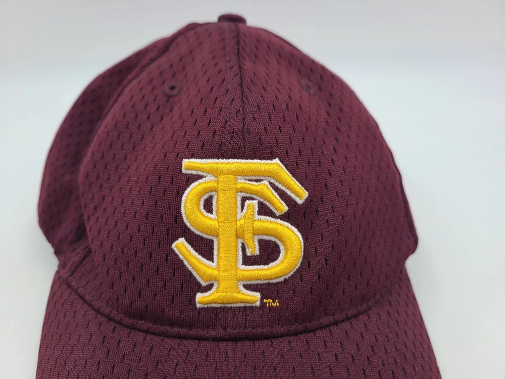 The tag says L-XL, but it seems smaller and is probably best suited for M-L sized heads. Also has some wear underneath the brim as seen in photos. Florida State University Seminoles Twins Enterprise Fitted (Seems M-L) Hat Cap. EACH ADDITIONAL HAT PURCHASED IS ONLY $1 ADDED SHIPPING!