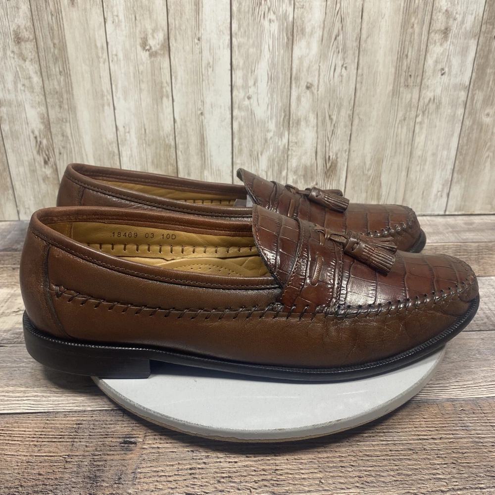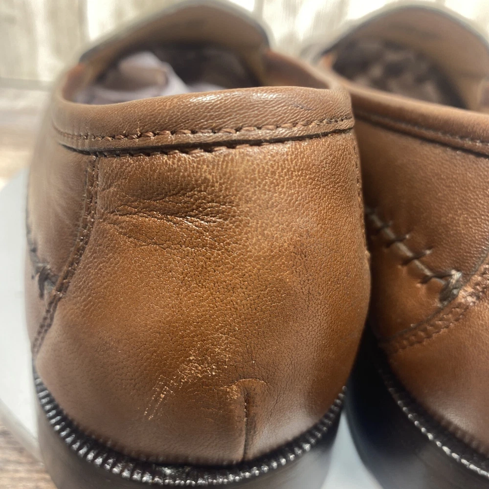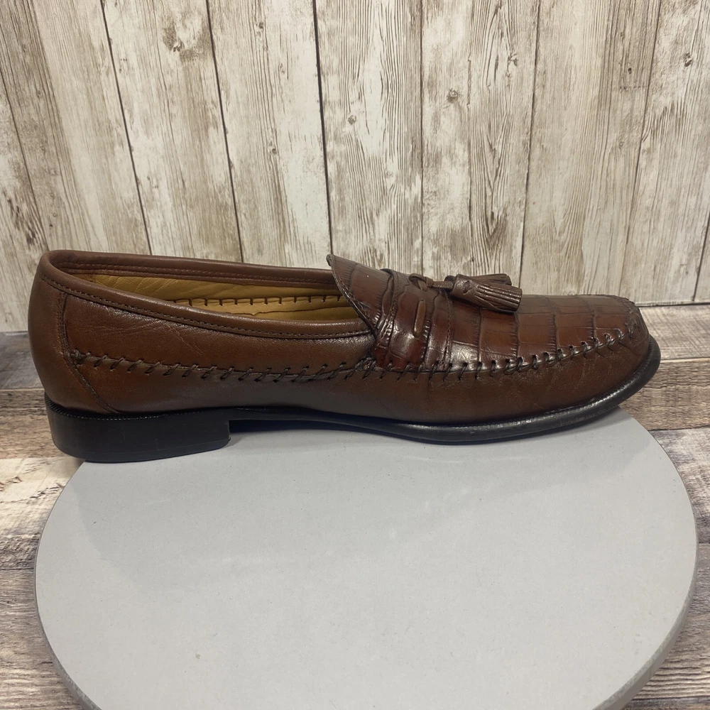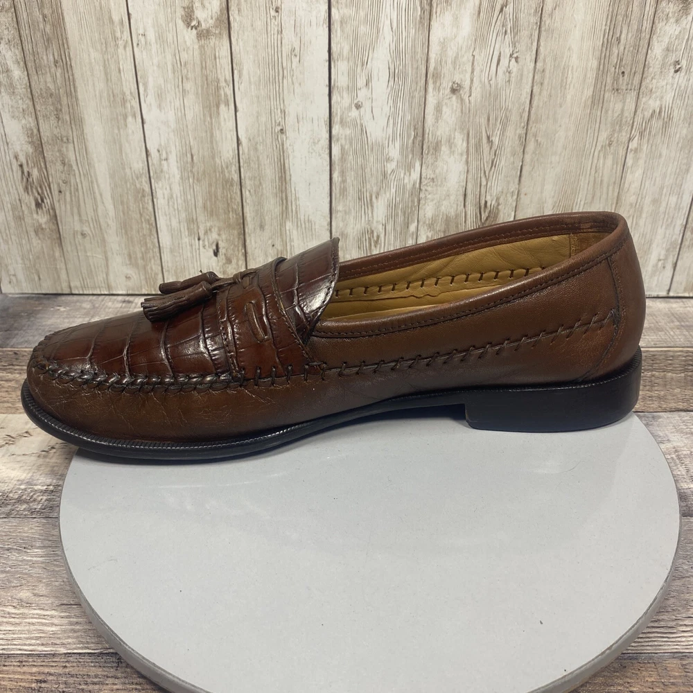 The product is a pair of Florsheim Men's Dress Shoes in Brown Croc Embossed Leather Loafers with Tassel detailing. Good condition. Show some wrinkles. Please check all the pictures.