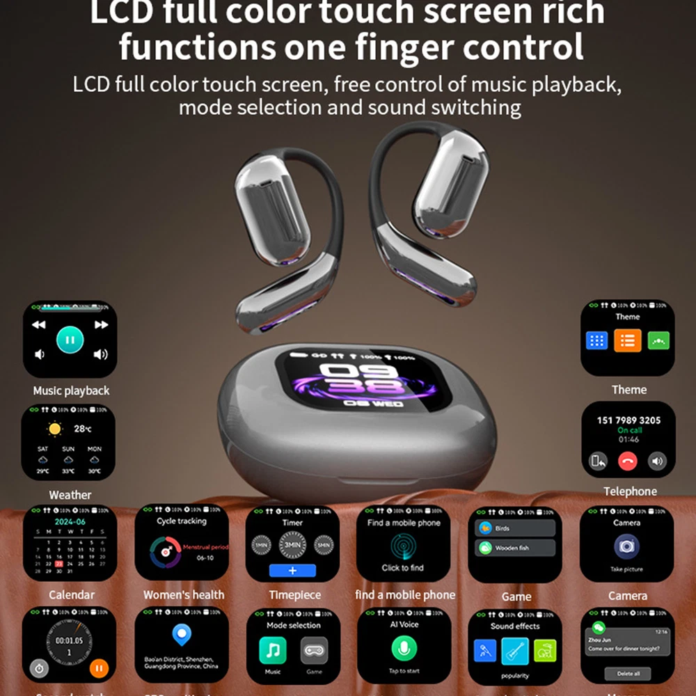 Flourish3 Open Ear Running Earbuds Intelligent Touch Screen Open Earphones Bullet Points: Easy to Use: Control your open ear headphones with ease through the charging case screen. No dependency on your phone or app to access all the functions you need Stable Pairing: Quickly connect these open ear headphones with your wireless devices such as laptops and smartphones, guaranteeing a seamless listening experience with strong connectivity up to 33 feet Big Battery Life: Experience uninterrupted music with our open ear headphones. With over 40 hours of music time and up to 8 hours of playtime on a single charge per earbud, you no longer need to worry about battery life when traveling Widely Used: Enjoy clear sounds while staying active, with our open ear headphones. Designed to endure sports or rainy days, this gadget ensures uninterrupted music and calls with a stable connection that's perfect for workout or outdoor exploration Great Sound Effect: Get lost in your music with our open ear headphones. Experience sound as if you are in the same room as your favorite artist. Delivering an unrivaled audio experience, these headphones ensure clear sound quality and provide hours of listening pleasure without any discomfort Experience music like never before with our open ear wireless earbuds. With fast connection speed and stable signal, you won't have to worry about disconnects. Specification: Product name: sports wireless headset Color: black, silver Wireless: v5.4 Control mode: touch work Wireless effective distance: more than 32 feet Headset use time: 40 hours Charging time: 1.5 hours Function: waterproof, noise reduction Pack List: Open ear headphones*1 1.You can make a Credit payment via Paypal.Paypal will let you use MasterCard,Visa to pay. 2.Payment should be completed within 5 days after auction closed, or unpaid dispute will be filed for an closing auction.An unpaid case will be filled after 4 days. ● We strive for 100% customer satisfaction ! ● Positive Feedback is very important to us. ● We hope that you contact us immediately BEFORE you give us neutral or negative feedback, so that we can satisfactorily address your concerns. ● We promise to offer the lowest price and high quality produce. Dear buyers : ● Welcome to my store ! ● Your satisfaction is our top goal,we appreciate your patronizing. ● If you have any questions, please contact us before leave negative or neutral feedback, we will try our best to solve the issue to your satisfaction, thanks ! ● If you are satisfied with our service, please rate the details of the transaction (Detailed Seller Ratings) on eBay. ● Please always talk to us via ebay Message. ● We appreciate your business and look forward to growing our e-Bay sales with satisfied customers.