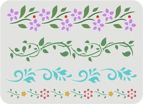 Return Policy Fast Delivery Trusted seller Flower Border Stencil (4 Style) 11.7x8.3inch Reusable Flower Drawing Stencil Vines Pattern Stencil Ivy Decoration Stencil for Painting on Wall, Furniture, Fabric, Wood and Paper Product Description 【Flower Border Stencils】You will get 1 piece flower border pattern (with 4 style) painting stencil, with the square size of 29.7x21cm/11.7x8.3inch. You can draw it on any surface you want to decorate, use your creativity, believe your every creation will have surprises! 【High Quality Material】: Our DIY craft stencils are made of eco-friendly PET, which are durable and lightweight, washable and reusable. And the edges is smooth, safe for kids and your family. 【Washable & Reusable】Our drawing templates are durable and washable, just use soap and water to wash after use, can be applied repeatedly after washing, long use for different projects. 【Easy to Use】Firstly, place the stencil on flat objects surface and fix, then use the acrylic paints or chalk paints and brush to draw the hollowed out part, or spray them by airbrush directly, finally remove the template. A artwork pieces is completed in just minutes. 【Widely Use】: The painting stencils can be used on most flat objects for DIY creations, such as wood signs, wall, tiles, floors, canvas, fabric, furniture, windows, ceiling, door, cabinets, painting crafts, posters. Great art pieces as home decoration. Shipping Returns Payment Shipping Shipping is FREE to all addresses other than APO/PO boxes in the lower 48 states. All our stock ships from US-based warehouses. Shipped via USPS or UPS (depending on location and package weight) Unless stated otherwise, all orders will ship within 24-72 hours of your payment being processed. Check our feedback to see the great reviews of FAST shipping we offer. Returns Seller does not accept returns Payment We currently accept payment via eBay managed payments only. Once payment is cleared, we will dispatch your shipment within 1-3 business days. Please refer to the "Shipping" tab for more information regarding shipping speed to your destination.