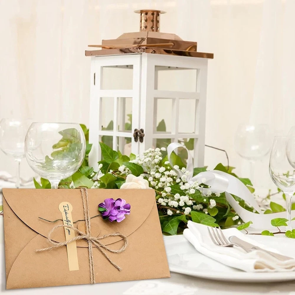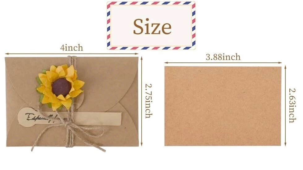 ๐ ๐๐น๐๐ถ-๐ผ๐ฐ๐ฐ๐ฎ๐๐ถ๐ผ๐ป๐: Perfect size for gift cards, business cards, name cards, small thank you notes, gift tags and more! Great for holidays, baby shower, birthday, weddings, or other special occasions. ๐๐น๐ฒ๐ด๐ฎ๐ป๐ ๐๐ฒ๐๐ถ๐ด๐ป: Simple and classy designs with artificial flower and hemp cord tie-string. ๐ฃ๐ฟ๐ฒ๐บ๐ถ๐๐บ ๐ค๐๐ฎ๐น๐ถ๐๐ : Made of high-quality heavy-duty paper and each envelope is with a water-activated adhesive seal.