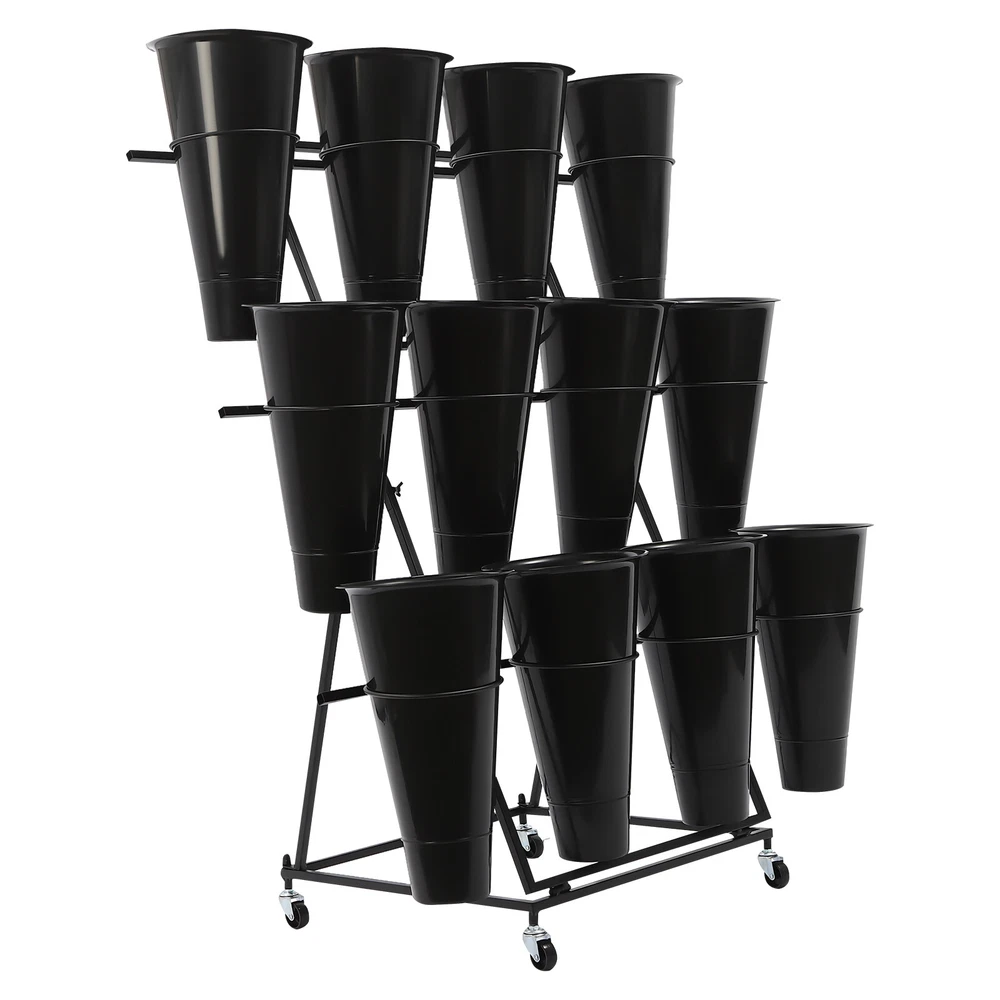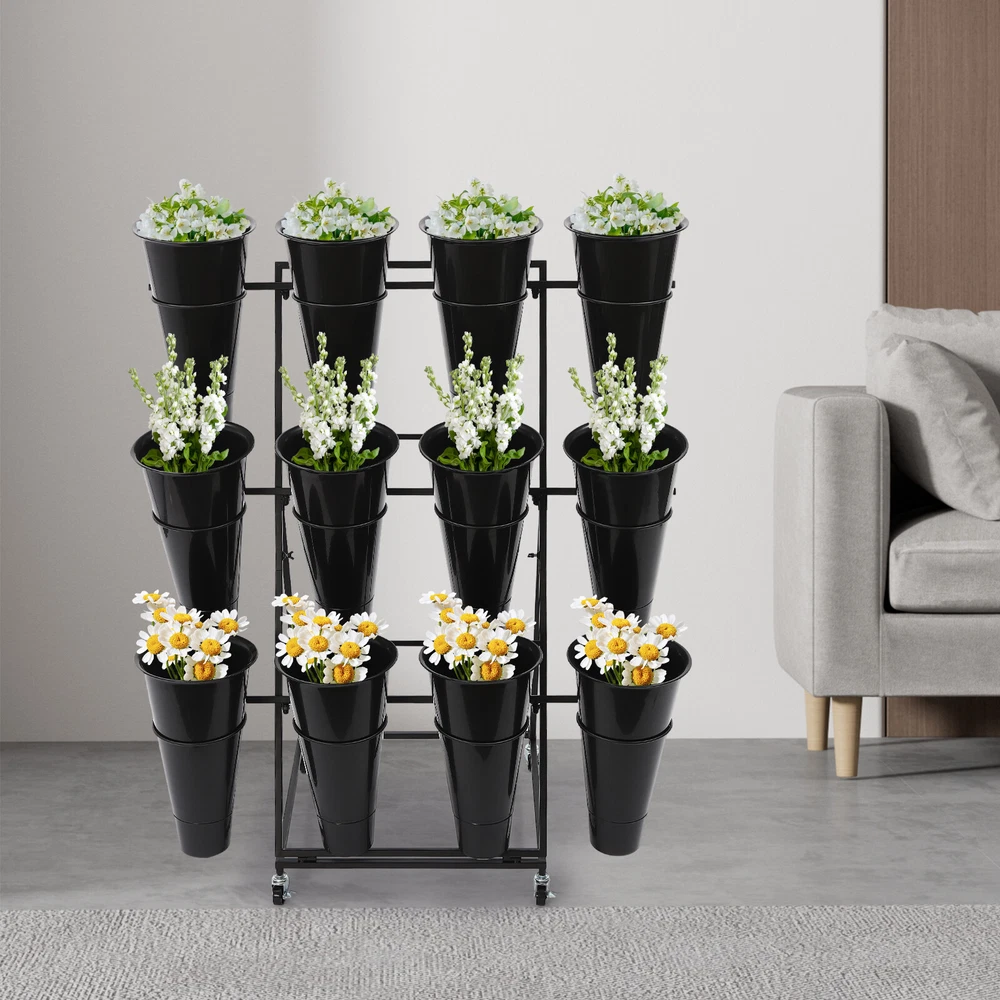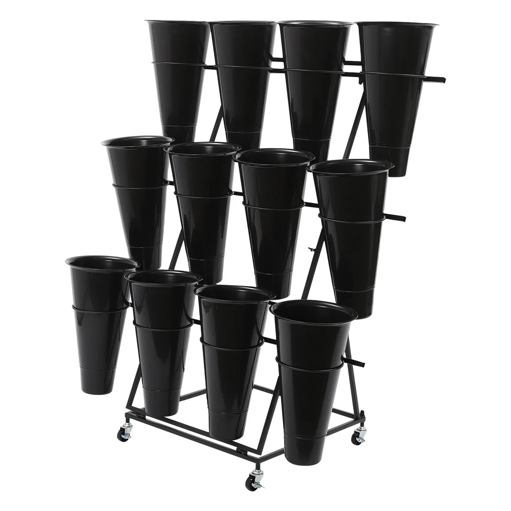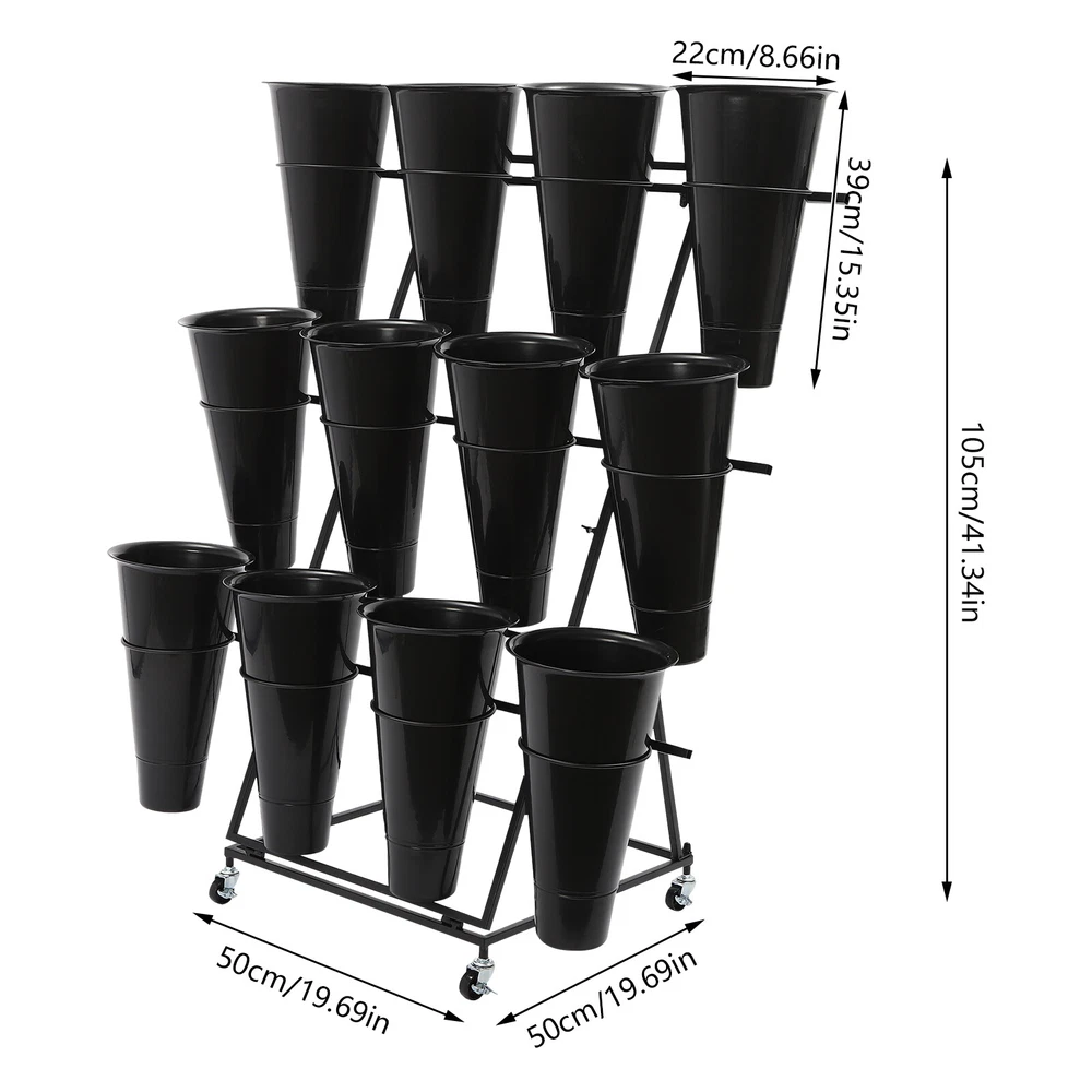 Flower Display Stand, 3-tier Flower Holder, Flower Display Stand with 12 Pieces Welcome❤ Flower Display Stand, 3-tier Flower Holder, Flower Display Stand with 12 Pieces Buckets Description This flower display stand is made of high-quality iron pipe with a solid structure, which allows you to place the bucket firmly on it and arrange the flowers steadily and neatly. It can be used for waking up flowers, keeping flowers, or decorating. It is not only a reflection of the beauty of flowers, but also a sublimation of the style of the florist. We believe that this product will win the favor and praise of customers, and become a flower mecca in their hearts. Key Feature Build to Last : High-quality iron, PP, and exquisite dispel rust process make this product hard, wear-resistant , and corrosion-resistant , which can keep practical and beautiful for a long time. 3-tier Structure: The three-tier structure makes effective use of limited space, and the delicate design allows 12 buckets to be embedded in an orderly manner, which is both an interpretation of pragmatism and a unique display of aesthetic concepts. Strong Stability : The sturdy material and reasonable structure provide 66.14 lbs load-bearing capacity for this product, so you can use it without worrying about collapsing and breaking. Multifunction : The 3-tier stepped flower display stand comes with 12 buckets to hold water and keep plants and flowers alive for a long time, can be arranged in different styles, and used as a decorative addition to any garden party or outdoor event. Attractive Appearance : Its geometric shape and classic black color enhance customers' visual experience and add flair to your shop. Wherever you place it, it will be a unique and refreshing sight. Effortless Clean : A simple structure and smooth surface make this product easy to clean. You only have to wipe it with a damp cloth. Easy to Move &Fix: 4 silent universal wheels (with brakes) make this product easy to move and fix, very energy-saving, and at the same time will not disturb others. Easy to Install : Simple structure and complete installation accessories allow you to install it yourself in a few minutes Guaranteed Customer Service: We aim to provide quality products and services. If you have any problems, please feel free to contact us. We will reply and solve the problem for you as soon as possible. Details Practical Bucket : The 15.35-inch deep bucket gives it the unique ability to hold most types of slender bouquets while ensuring that the roots of the bouquets can immerse themselves in fresh water and draw in the nourishment of life. Smooth Edges : They not only enhance the aesthetics of the product but also improve safety during installation and use. Application It is suitable for organizing and displaying plants in homes, florists, home balconies, gardens, clubs, weddings, and elsewhere. Specification Material: Iron, PP Surface Treatment: Dispel Rust Shape: Trapezoid Color: Black Assembly Required: Yes Mount Type: Floor Standing Style: Modern Number of Flower Rack Tiers: 3 Number of Universal Wheels: 4 Number of Buckets: 12 Load Capacity: About 30kg/66.14lbs Bucket Size(H*D): 39*22cm/15.35*8.66in Tier-spacing: 36cm/14.17in Cross Rod Length: 96.5cm/37.99in Flower Rack Size: 50*50*105cm/19.69*19.69*41.34in Flower Display Stand: Gross Weight: 6kg/13.23lbs Net Weight: 5.5kg/12.13lbs Package Size: 102*62*8cm/40.16*24.4*3.15in 12 Round Buckets : Gross Weight: 4kg/8.82lbs Net Weight: 3.5kg/7.72lbs Package Size: 61*24*24cm/20.12*9.45*9.45in Package Included 1*Flower Display Stand 4*Wheels 12*Buckets All Accessories for Assembly Notes Please note that flowers are not included in this product. We send the flower display stand and buckets separately to protect the product from damage during transportation. Please wait patiently for all parts to arrive. Please allow the slight color difference caused by the shooting light and the 1-3 cm error due to manual measurement, and make sure you do not mind before ordering. Welcome ~ ☆ ☆ ☆ ☆ Payment Delivery details Terms of sales About us Contact us Payment We accept ebay payment 。 Fees such as import duties, taxes are not included in the item price or shipping costs. These charges are the buyer's responsibility. Delivery details Shipping: 2-9 working days to: USA Terms of sales We maintain high standards of excellence and strive for hundred percent customer satisfaction. Feedback is very important to us. We hope that you contact us immediately before you give neutral or negative feedback, so that we can address your concerns. It is impossible to address issues if we do not know about them! About us Your satis faction is our ultimate goal. We work hard to earn your trust and future business. Our certified technicians have tested each item before shipping. The unit comes with 1 year limited warranty on all manufacturing defects. a) If you receive a defective item, you may return it or ask for a discount. Please contact us within 14 days after you receive the package. b) What you returned must be intact and in its original packaging as re? u. Customer is responsible for shipping costs of the returned item. c) We will cover the cost of shipping back t with the shipping rate indicated in the registration page. We will send you a new unit or refund the full payment you paid. Thank you. Contact us Business Hour Business Hour: Monday To Friday: 8:30 AM to 5:00 PM (Beijing China time) Due to time zones, our reply to your questions may not be immediately. But within above working time, we will reply your email within 24 hours. If it's non-workdays, please kindly be patient and wait till Monday. Please contact us with ebay message. Please feel free to contact us if you have any questions. Monday To Friday: 8:30 AM to 5:00 PM (Beijing China time) Due to time zones, our reply to your questions may not be immediately. But within above working time, we will reply your email within 24 hours. If it's non-workdays, plea
