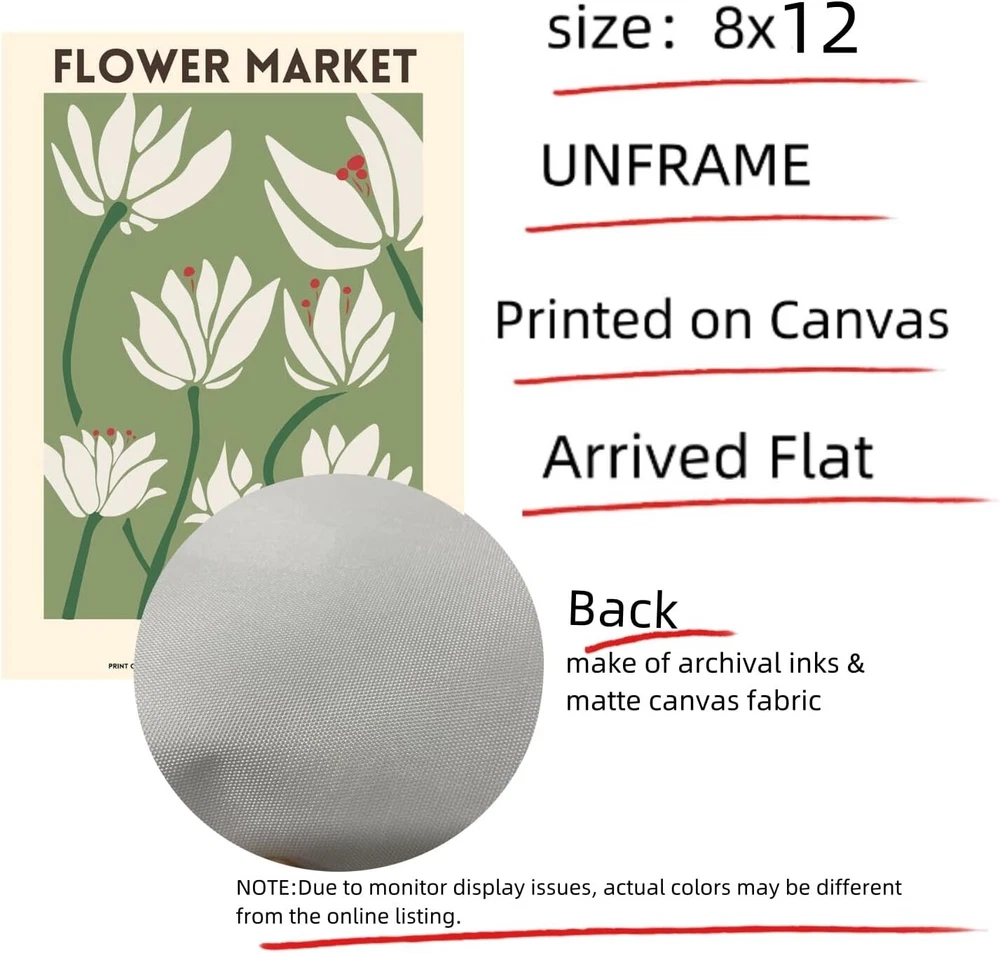-Brand New - Never Used - Questions: Feel free to ask any Questions - BOX: Never Opened - DESCRIPTION: • 8X12 UNFRAME FLOWER MARKET POSTER:This art prints set is suitable for 8x12 photo frames. You can choose the photo frame style you like for decoration. * STRONG COLORS & GALLERY QUALITY: The flower market art prints are made using archival ink printed and premium fabric canvas, making them have a strong sense of color impact. * BRIGHT YOUR LIVING ROOM: The beautiful colors and abstract nature of the posters make them the perfect addition to every bright living room,will ensure that your home is full of modernity and colorful while blending with the other decorations of the room. * NEVER FADE: this flower market poster is created using oil canvas, the clear printing will never fade, and we can ensure that each color is beautiful and there will be no color difference. * CREATE A HOME ART GALLERY: flower art prints create a beautiful focal point of your previously ignored area for your bathroom wall decor, Easily create a home art gallery. - OFFERS: Reasonable offers are considered, LOWBALLERS, Best price and Lowest askers will be ignored - all sales final/no refunds/ no exchanges/ no returns - Disclaimer: I do not own the brand's trademarks, logos, pictures, or products posted. I do not intend to infringe on copyright. I find such content available on the internet. Contents are considered fair use. - Sneeu Flower Market Poster 8x12 Wall Art for Living Room Matisse Wall Art Boho Wall Decor Aesthetic Picture Wall for Bedroom Dormitory