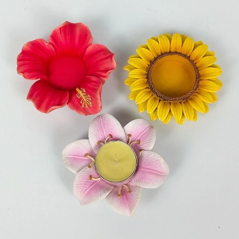 Flower Shaped Holder Molds Flower Candlestick Molds Features: Each flower shaped holder molds feature single hole, great for making tealight holder, candlestick, holder, home decorations depoxy resin project. Craft with silicones, and easy to use, good durability, safe for refrigerator, oven, dishwasher. for tealight holder, holder, gypsum decorations, home decorations, Christmas present, birthday For crafting holder, add various embellishments, such as essential oil, dry flower, sequins, and other crafting embellishments you like. Use our flower shaped stand molds to make craft, add touch of elegant to your room. Specifications: Color: Green Component: Silicones Size 1: Approximately. 10x2.6cm/3.94x1.02in Size 2: Approximately. 10.5x3cm/4.13x1.18in Size 3: Approximately. 10x3.50cm/3.94x1.38in Weight: Approximately. 380g-462g Package Includes: 1Piece Flower Shaped Holder note: 1.Please allow 0-1cm error due to manual measurement. make sure you donot mind before bid. 2.Due to difference between different monitors, the picture may not reflect the actual color