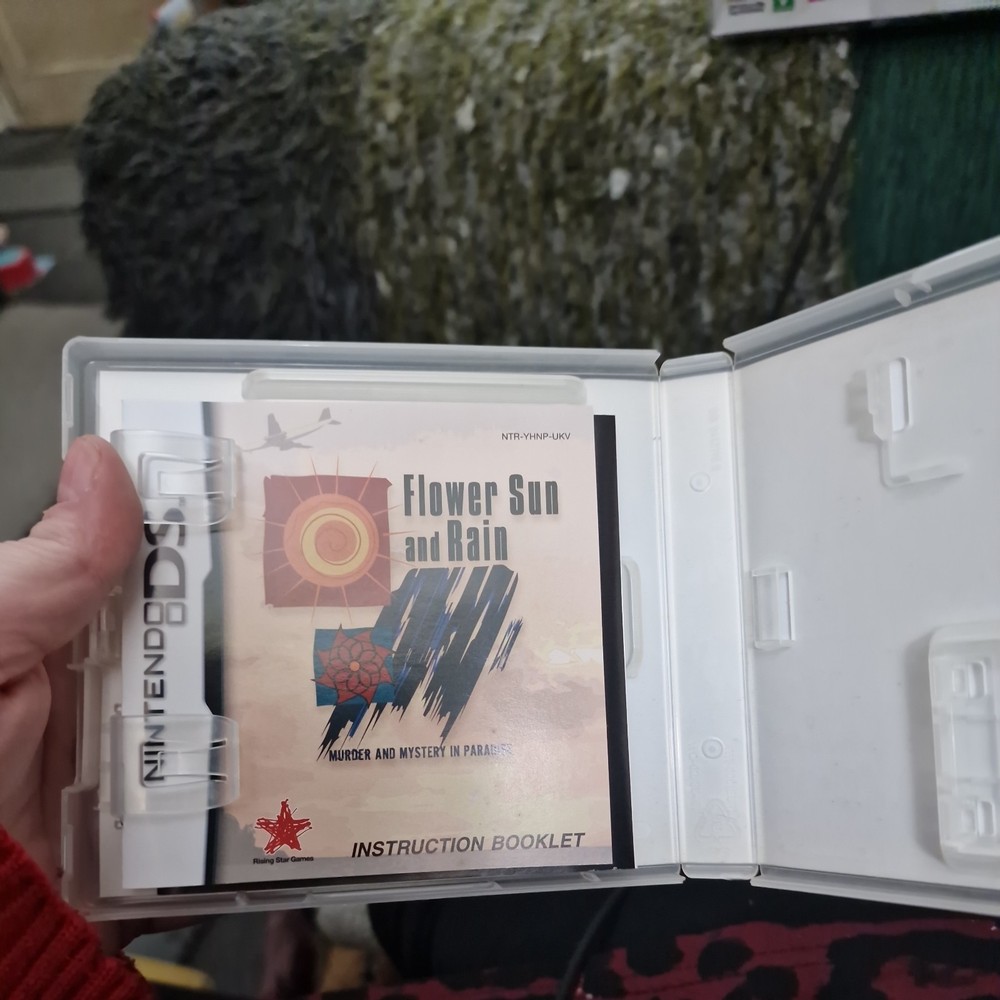 An English copy of the rare game Flower, Sun and rain for the Nintendo ds. Comes in little case but also manual and case.