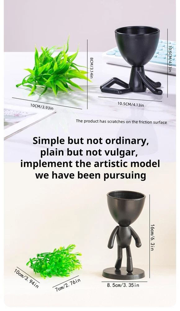 Free and fast shipping , shipping take up 1-7 Business Days 30 Day Return Accepted EASY PAYMENT via PayPal, Credit Card, PayPal Credit, Google Pay... Flower Vase Plastic Figurine Black Solid Modern Small Free Stand Bottle Décor • Unique Pastoral Style :This product features a unique pastoral style, adding a touch of rural charm to any space. Its plant-themed design is perfect for creating a natural and soothing environment. • Creative Office Decor :With its character shape and plant decoration, this piece serves as a creative office decoration, adding a touch of personality and originality to your workspace. • Quality Plastic Material :Made from high-quality plastic, this product is durable and long-lasting. Its solid construction ensures it can withstand the test of time, maintaining its appearance over years. • Versatile Figurine :As a versatile figurine, it can be used in various settings - be it at home, office, or any other space. Its simplistic yet appealing design makes it a great addition to any environment. • Brand Quality :Produced by an unspecified brand, this product guarantees brand quality, ensuring you get a product that meets your expectations and satisfaction. REVIEWS The product came very well packaged. I'm very happy. thank you for everything. Seller strongly recommended. This is great! I definitely recommend! Product looks amazing Delivery was fast. Excellent seller, great communication. I advise everyone to buy it!