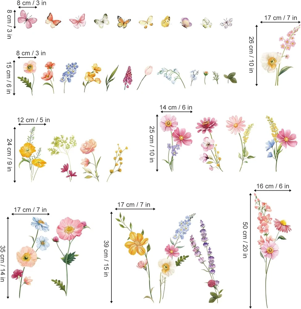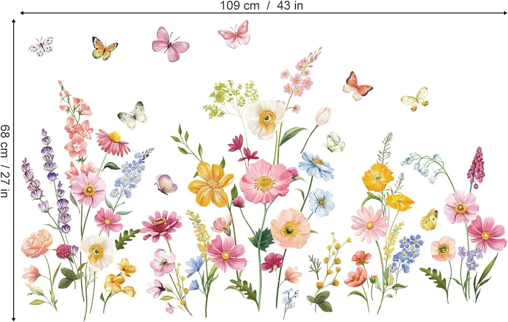 It can be stuck onto any clean, dry, non-textured smooth surfaces: walls, windows, tiles, furniture, mirrors, even your refrigerators. decalmile wall stickers are made of high quality, bright and colourful, easy to peel and stick, removable and waterproof. decalmile garden wildflower wall decals are perfect to decorate girls bedroom, living room, dining room, office. Come in 2 sheets, sheet size: 30cm x 90cm (11.81" x 35.43"), depending on your preference to DIY. If you're not satisfied with your purchase or have any problems on installation, please feel free to contact us and we will reply and help to solve problems within 24 hours. Product Description DECALMILE FLOWER WALL DECALS Add Chill Vibes Various Choices with Unique Design decalmile stock a huge selection of stunning wall stickers catering to all ages and tastes. We promise all stickers are non-toxic and top quality PVC material Wall Decals for Kids Become an interior decorator and transform your living space from ordinary to extraordinary with decalmile unique wall stickers. Flower Wall Decor Add to Cart Add to Cart Add to Cart Add to Cart Add to Cart Add to Cart Add to Cart Customer Reviews 4.5 out of 5 stars 756 4.5 out of 5 stars 40 4.6 out of 5 stars 207 4.7 out of 5 stars 70 4.5 out of 5 stars 148 4.5 out of 5 stars 155 4.6 out of 5 stars 1,849 Price $12.99 $ 12 . 99 $12.99 $ 12 . 99 $12.99 $ 12 . 99 $12.99 $ 12 . 99 $12.99 $ 12 . 99 $12.99 $ 12 . 99 $11.99 $ 11 . 99 Removable ✔ ✔ ✔ ✔ ✔ ✔ ✔ Reusable ✘ ✘ ✘ ✘ ✘ ✘ ✘ Material PVC PVC PVC PVC PVC PVC PVC Installation Type Peel & Stick Peel & Stick Peel & Stick Peel & Stick Peel & Stick Peel & Stick Peel & Stick Theme Flower Flower Flower Flower Flower Sunflower Sunflower Pink Wall Decor Add to Cart Add to Cart Add to Cart Add to Cart Add to Cart Add to Cart Add to Cart Customer Reviews 4.6 out of 5 stars 852 4.5 out of 5 stars 199 4.7 out of 5 stars 94 4.8 out of 5 stars 167 4.6 out of 5 stars 510 4.4 out of 5 stars 387 4.4 out of 5 stars 387 Price $19.99 $ 19 . 99 $11.99 $ 11 . 99 $12.99 $ 12 . 99 $19.99 $ 19 . 99 $21.99 $ 21 . 99 $12.99 $ 12 . 99 $11.39 $ 11 . 39 Removable ✔ ✔ ✔ ✔ ✔ ✔ ✔ Reusable ✘ ✘ ✘ ✘ ✘ ✘ ✘ Material PVC PVC PVC PVC PVC PVC PVC Installation Type Peel & Stick Peel & Stick Peel & Stick Peel & Stick Peel & Stick Peel & Stick Peel & Stick Theme Flower Flower Flower Blossom Tree Blossom Tree Vine Vine What types of surfaces can the wall decals be applied to? Our wall stickers can be applied to just about any clean and smooth surface that is free of dust, grease, or other contaminants. DecalMile wall stickers may not adhere to heavily-textured surfaces but can adhere to lightly textured wall. How long will my wall sticker stay up? DecalMIile wall stickers are not intended for permanent application. However, they can last for months or years depending on the surface and environment. Will the wall decals damage my wall? When walls have been prepared as recommended and proper application, most people have no wall damage issue while removing. Please be aware that there is potential for wall damage. Freshly painted walls should be allowed to cure for at least 4 weeks. I installed a wall decal but it is starting to peel off. What do I do? If part of a wall sticker starts to come off a surface, you can use washable glue, such as a glue stick or wallpaper paste or glue, to reattach it.