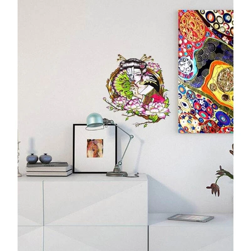 Wall Art MaterialvinylDescriptionFull color Wall Decal Decorate your home with beautiful and affordable polygonal vinyl decals for your walls. It is the newest home decor trend. It's easy to apply and really makes a room look elegant. Without much effort and cost you can decorate and style your home or any other surface. Putting up these paint-lookalike stickers, vinyl decals will completely change the way your accommodation looks. APPLICATION AREA Decals can be applied to any clean, smooth and flat surface. Put them on your walls, doors, windows - anywhere you want! Application areas: Walls, Windows, Tiles, Floors, Ceiling, Doors, Furniture, Electrical items such as refrigerator, TV, washing machine, Computers, cell phones, notebook, ipad etc., Store Front and many other surfaces. Also Free Shipping Over $49.99* Details Flowered Geisha Wall Decal, Flowered Geisha sticker Product Description: Wall Art Material vinyl Description Full color Wall Decal Decorate your home with beautiful and affordable polygonal vinyl decals for your walls. It is the newest home decor trend. It's easy to apply and really makes a room look elegant. Without much effort and cost you can decorate and style your home or any other surface. Putting up these paint-lookalike stickers, vinyl decals will completely change the way your accommodation looks. APPLICATION AREA Decals can be applied to any clean, smooth and flat surface. Put them on your walls, doors, windows - anywhere you want! Application areasWalls, Windows, Tiles, Floors, Ceiling, Doors, Furniture, Electrical items such as refrigerator, TV, washing machine, Computers, cell phones, notebook, ipad etc., Store Front and many other surfaces. Also this graphic can be applied to cars. It is much faster, cleaner and easier than painting. Geisha Flowers Fan Decal, Geisha Flowers Fan Sticker, Geisha Flowers Fan Wall decal, Geisha Flowers Fan Modern wall art , Geisha Flowers Fan Decor, Geisha Flowers Fan Wall Decal