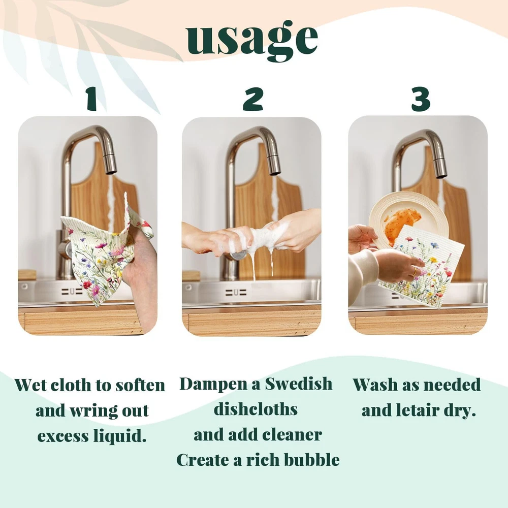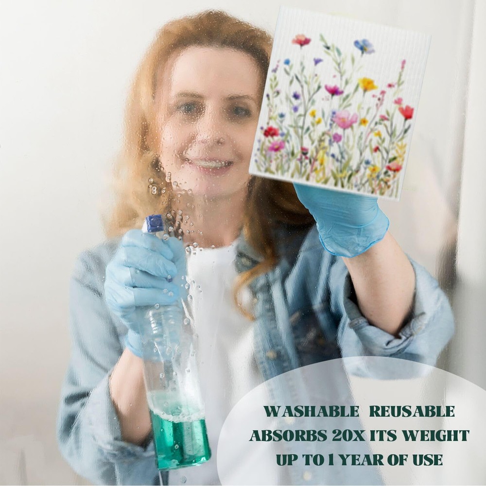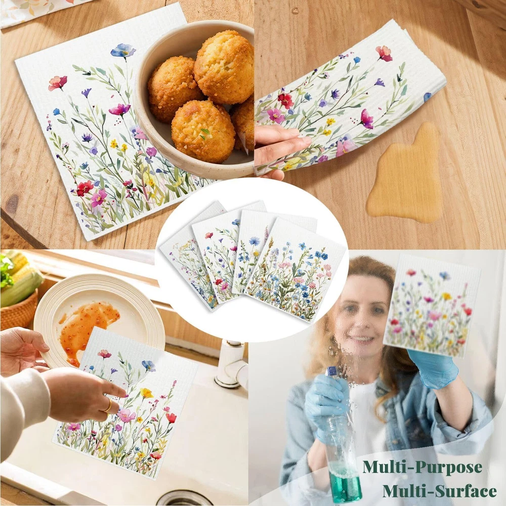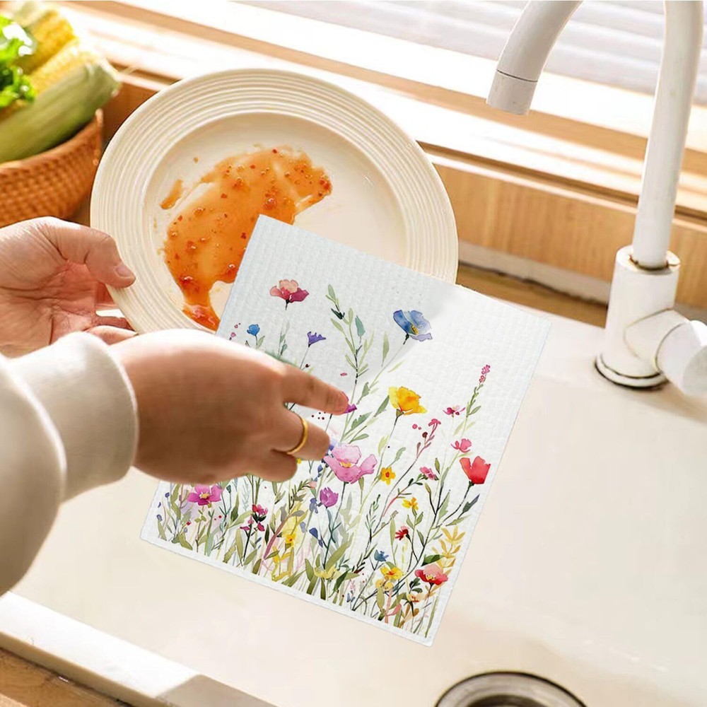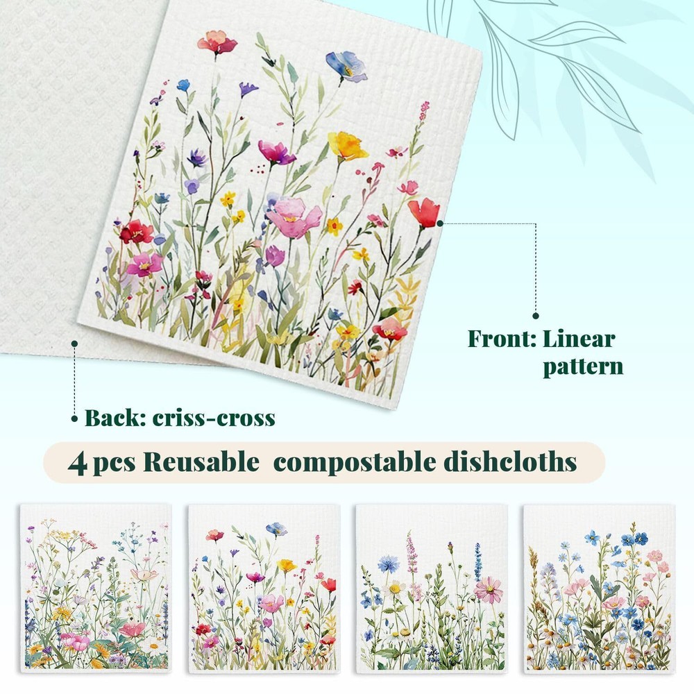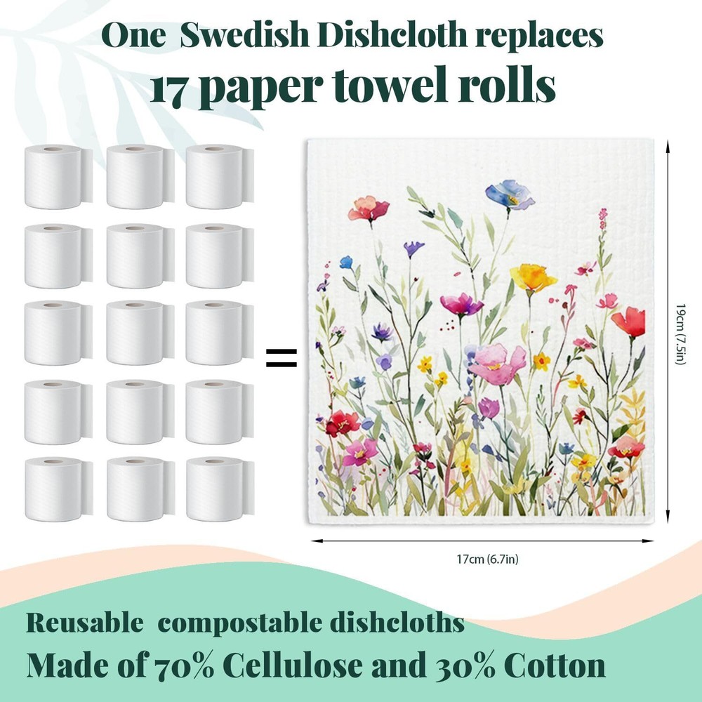 Flowers Swedish Dishcloths Papaya Reusable Paper Towels Watercolor 4 Pack