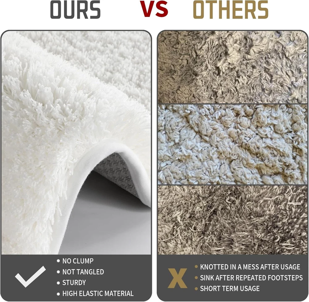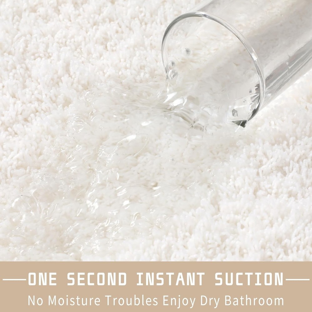 This U-shaped bath rug is incredibly soft and plush—it feels like stepping on a cloud! The microfiber stays fluffy even after multiple washes, with no clumping or tangling. The non-slip backing keeps it securely in place, and the off-white shade adds a clean, elegant look to any bathroom. Perfect for both comfort and durability!