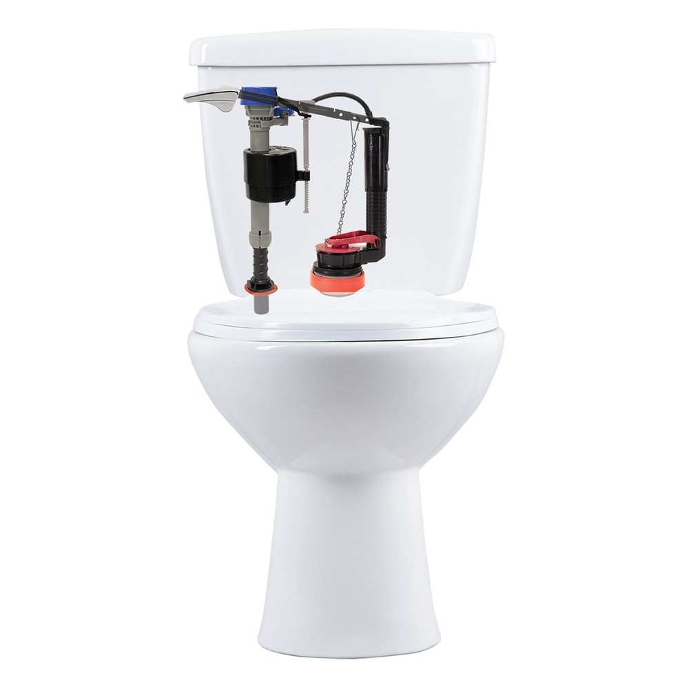 The new Fluidmaster K-400H-021 PerforMAX Universal 2 in. High-Performance Everything Toilet Tank Repair Kit offers the most complete solution to repair your toilet fast. Best for use in 1.28 and 1.6 GPF toilets (can use with older 3.5 GPF models). 14.25 in Assembled Product Height. Quickly solve running, noisy or leaky toilet problems with one kit designed to fit every toilet type and provide the simplest install possible. Follow the step-by-step instructions, and use the toilet install tools on the fill valve, flush valve and tank-to-bowl hardware. No bucket, no problem, use the multipurpose package to catch any remaining water and eliminate water mess. This complete toilet repair kit includes the PerforMAX toilet fill valve, a high-performance fill valve featuring 2X greater refill rates than standard models, with ultra-quiet operation and adjustable bowl and tank water settings to customize your water use per flush. The adjustable 2 in. toilet flush valve changes height with a quick 90° turn, no cutting required. Also including the PerforMAX toilet flapper. Chlorine and hard water resistant, it allows you to customize your water use per flush and save water. The universal tank-to-bowl toilet gasket is made to fit any 2 in. flush valve toilet, in a simple two-piece design, 1.97 oz weight. This high-performance toilet repair kit is the top solution to repair and upgrade your toilet tank, with all the parts and tools needed for the fastest and easiest installation experience available. Assembled Product Weight 1.97 oz The new Fluidmaster K-400H-021-02 Everything kit includes everything you need to fix your toilet in 1 trip and 1 purchase Easy to install, universal design fits 2 in. flush valve toilets Adjustable flush valve eliminates cutting, simply twist to adjust height and fit any 2 in. flush valve Color-coded, helpful install tools included for the fastest installation possible Universal tank-to-bowl gasket for use with all 2-in. flush valve toilets, including , Gerber and more Multipurpose package is designed to hold water during install to eliminate mess and hassle PerforMAX 2 in. toilet flapper adjusts to set water use per flush and eliminate water waste Durable stainless steel hardware for a long lifespan