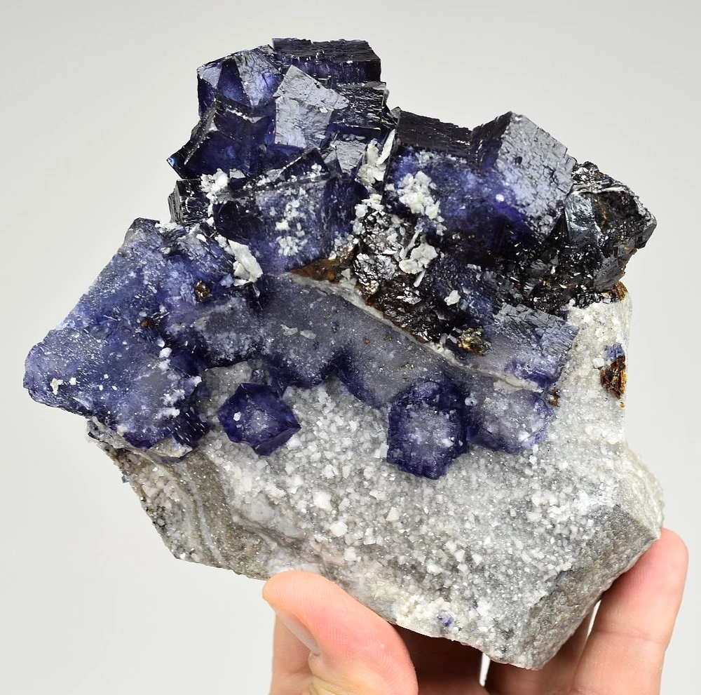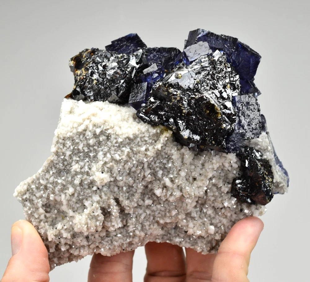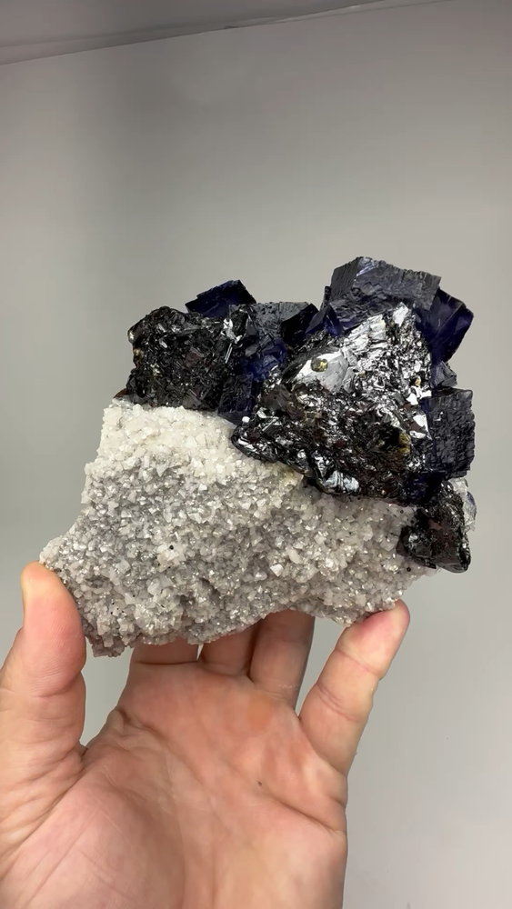 Beautiful rich purple/royal bluish fluorite crystals and lustrous sphalerite on a plate of sparkling white dolomite. A few pyrite crystals present as well. Very pretty with nice contrast. From the Elmwood Mine, Smith Co., Tennessee. 1064 g 13.2 x 12.7 x 6.2 cm Payment plans are available for higher value purchases. Please reach out for details. I do offer combined shipping and always automatically refund extra shipping costs. If you have any questions regarding how combined shipping works, please reach out to me, as there are occasionally issues for buyers when going to check out. *I buy specimens and small collections.* Please feel free to check out my other listings, as I am adding new material several times a week. All items come with an ID tag from my store along with any original tags that have come with the specimen. In some cases, I am open to offers! Shoot me one if you are interested, I won’t be offended! All specimens are packaged with extreme care! In the rare and unlikely event of a damaged product, I will provide a full refund. Thank you for your interest!