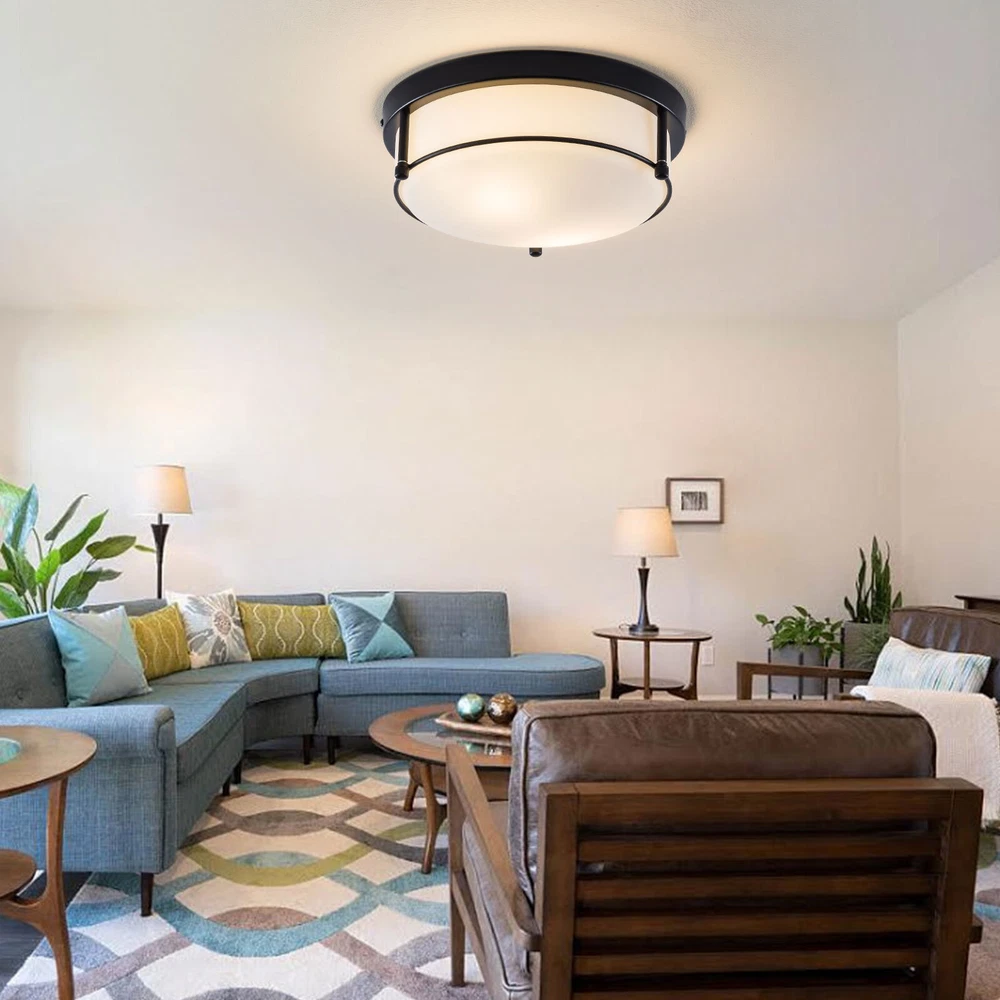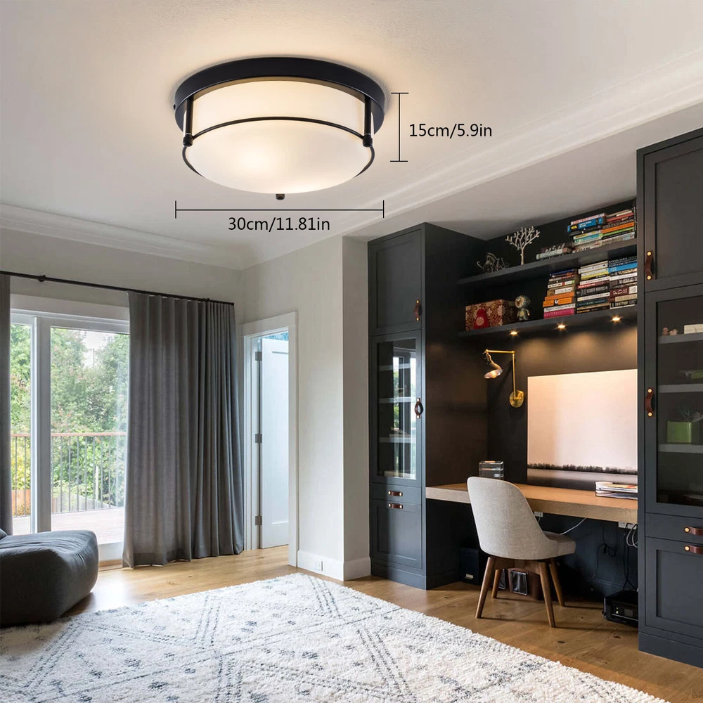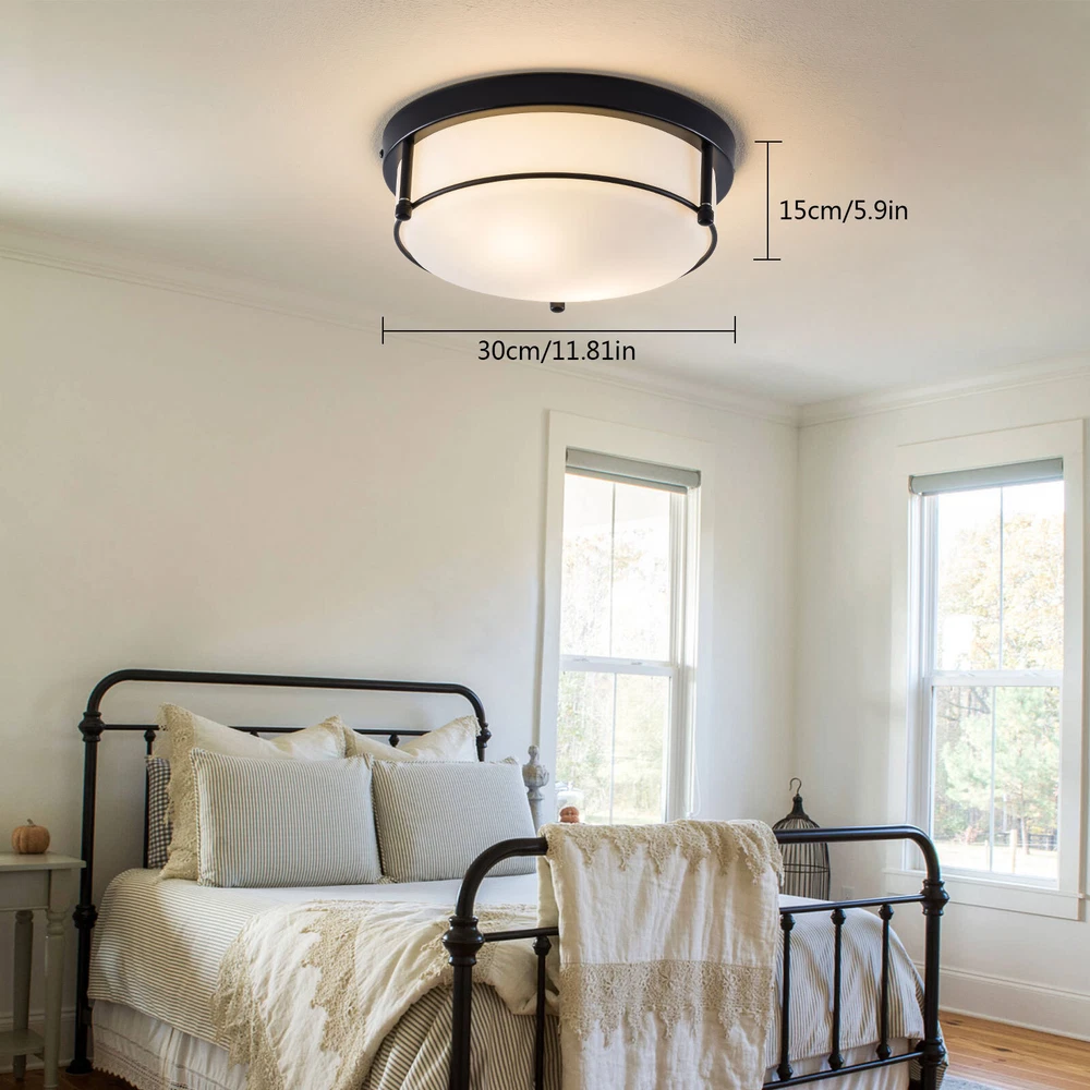 About this item MODERN DESIGN: The flush mount features metal frame in oil rubbed bronze finish, seeded glass lamp shade, with attractive farmhouse style, beautiful and durable. WIDELY APPLICATION: The modern style design of the lighting fixtures ceiling can integrate all decorations. The ceiling lamp is perfect for kitchen, bathroom, bedroom, living room, dining room, study room, porch and entryway, etc. BULB REQUIREMENTS: The bedroom lights for ceiling has two built-in E26 medium bulb bases, which support any LED/CFL/Edison bulbs with E26 bases, (Max 40W). When you use dimmer and dimmable bulb, the kitchen light fixtures ceiling can be dimmable. (Dimmers and bulbs are not included). EASY INSTALLATION: Dimension: 11.81''L x 11.81''W x 5.9''H. Hardwired, all installation acces Flush Mount Pendant Chandelier LED Ceiling Lighting Fixture Living Room Bedroom Welcome to my store Package Content 1 x Ceiling Light 1 x Instruction manual 1 x Hardware bag About this item MODERN DESIGN : The flush mount features metal frame in oil rubbed bronze finish, seeded glass lamp shade, with attractive farmhouse style, beautiful and durable. WIDELY APPLICATION: The modern style design of the lighting fixtures ceiling can integrate all decorations. The ceiling lamp is perfect for kitchen, bathroom, bedroom, living room, dining room, study room, porch and entryway, etc. BULB REQUIREMENTS: The bedroom lights for ceiling has two built-in E26 medium bulb bases, which support any LED/CFL/Edison bulbs with E26 bases, (Max 40W). When you use dimmer and dimmable bulb, the kitchen light fixtures ceiling can be dimmable. (Dimmers and bulbs are not included). EASY INSTALLATION: Dimension: 11.81''L x 11.81''W x 5.9''H. Hardwired, all installation accessories and installation instructions are included for quick and easy installation BULB REQUIREMENTS: 2*E26 Bulbs: No includes 2*E26 bulbs . The modern ceiling light allows you to change any color temperature bulb to get different lighting effects. Compatible with Led/Edison/Incandescent bulbs (110V-120V, 40W Max). Flat/ Ceiling Available & Wide Application: The hallway light fixture is compatible with flat/solp ceilings. This modern flush mount light fixtures is the perfect option for brightening up indoor areas like the kitchen island, dining room, living room, bedroom, bathroom, girls room, restaurant, entryway, corridor, hallway, foyer and etc. Voltage: 110-120V,It can be dimmable when you used with a dimmable bulb and compatible dimmer switch. Application Widely:used in your indoor space, such as bedroom, closet, hallway, foyer, dining room, living room, entryway, kitchen, make up room, kid room, bar, aisle, hotel, restaurant, office, parlor, loft. Easy to Assemble: Installation instruction and all mounting hardware are in the package for quick and easy installation. Installation Instruction: ①For your safety, Please turn off the power before installation ② Please check parts against the packing list to see if the accessories are available. ③We provide install instructions for you. please referred to install manual or have a professional electrician. If need any help, please contact us. Payment Delivery details Terms of sales About us Contact us Payment We accept ebay payment 。 Fees such as import duties, taxes are not included in the item price or shipping costs. These charges are the buyer's responsibility. Delivery details Shipping: 2-9 working days to: USA Terms of sales We maintain high standards of excellence and strive for hundred percent customer satisfaction. Feedback is very important to us. We hope that you contact us immediately before you give neutral or negative feedback, so that we can address your concerns. It is impossible to address issues if we do not know about them! About us Your satis faction is our ultimate goal. We work hard to earn your trust and future business. Our certified technicians have tested each item before shipping. The unit comes with 1 year limited warranty on all manufacturing defects. a) If you receive a defective item, you may return it or ask for a discount. Please contact us within 14 days after you receive the package. b) What you returned must be intact and in its original packaging as re? u. Customer is responsible for shipping costs of the returned item. c) We will cover the cost of shipping back t with the shipping rate indicated in the registration page. We will send you a new unit or refund the full payment you paid. Thank you. Contact us Business Hour Business Hour: Monday To Friday: 8:30 AM to 5:00 PM (Beijing China time) Due to time zones, our reply to your questions may not be immediately. But within above working time, we will reply your email within 24 hours. If it's non-workdays, please kindly be patient and wait till Monday. Please contact us with ebay message. Please feel free to contact us if you have any questions. Monday To Friday: 8:30 AM to 5:00 PM (Beijing China time) Due to time zones, our reply to your questions may not be immediately. But within above working time, we will reply your email within 24 hours. If it's non-workdays, please kindly be patient and wait till Monday. Please contact us with ebay message. Please feel free to contact us if you have any questions. On Nov 11, 2024 at 23:49:56 PST, seller added the following information: