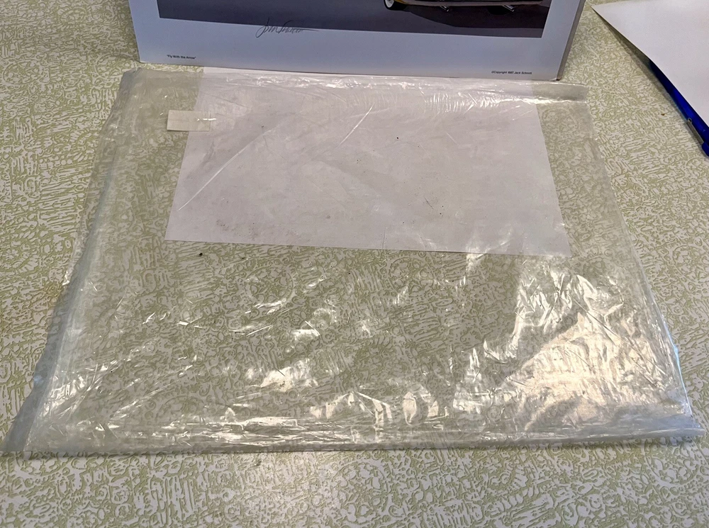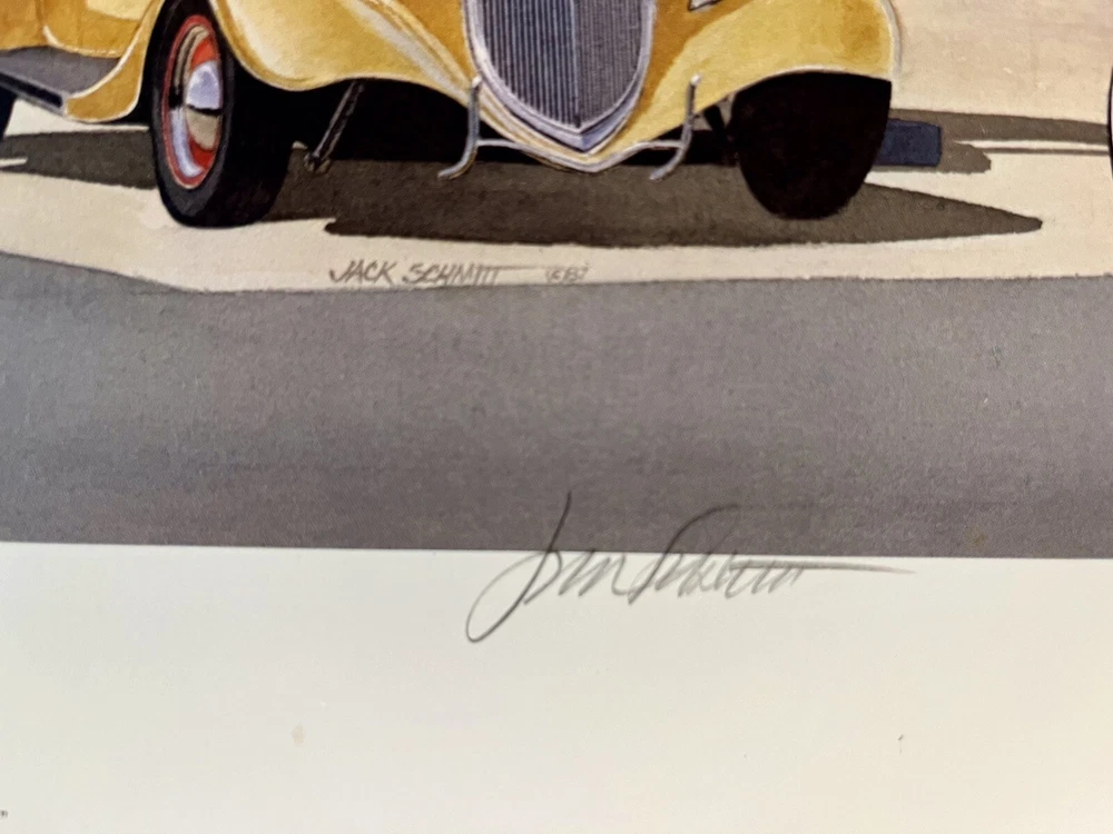 This Jack Schmitt print, titled "Fly With the Arrow," captures the essence of Americana and nostalgia. The contemporary piece, produced in 1987, features a double signature by the artist and measures 14 inches in length and 11 inches in height. The print is made of high-quality paper and is perfect for any art enthusiast or collector. The artwork depicts a gas station and an automobile, with a winter theme. The print is classified under the categories of Art and Art Prints, and it is a great addition to any collection. and is a perfect representation of American culture. It is its original plastic cover with cardboard backing. The item will be very carefully packaged and shipped promptly upon receipt of payment. All items I sell are guaranteed to be as described and pictured, or your payment will be refunded upon return of the item in its original condition.