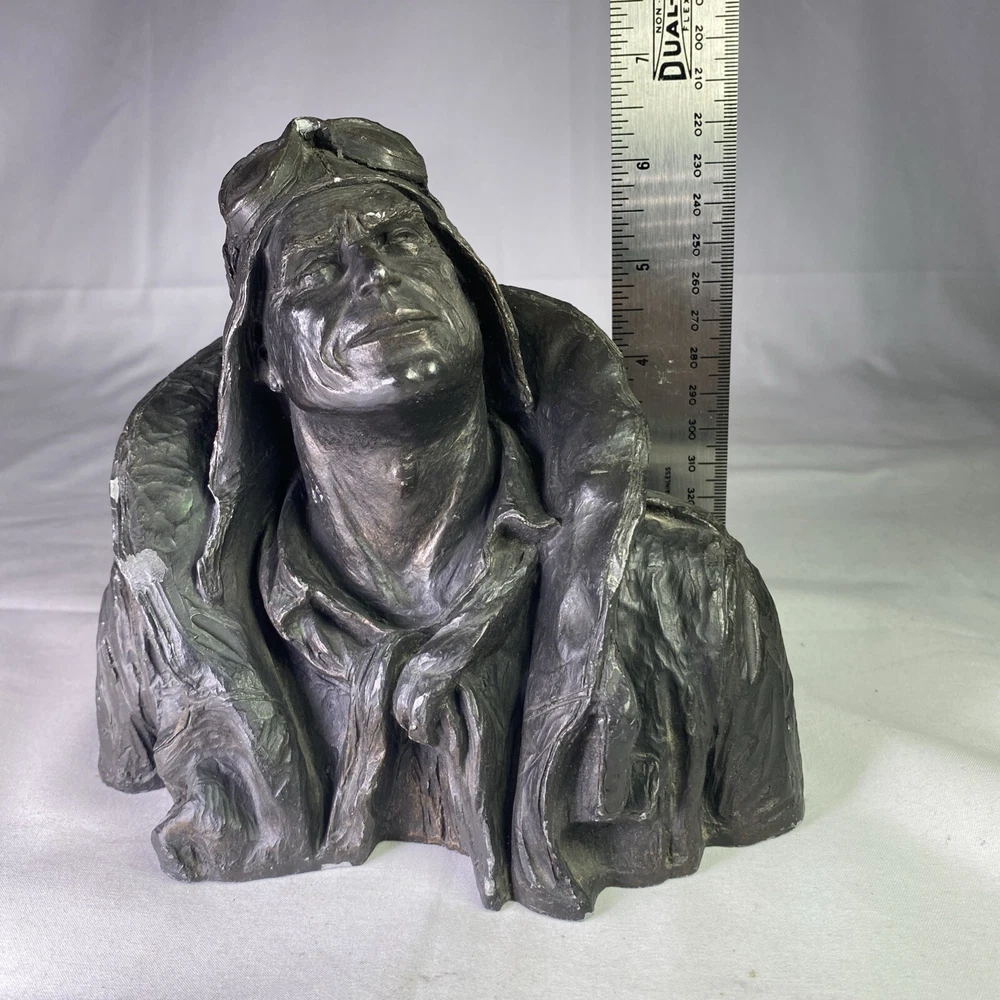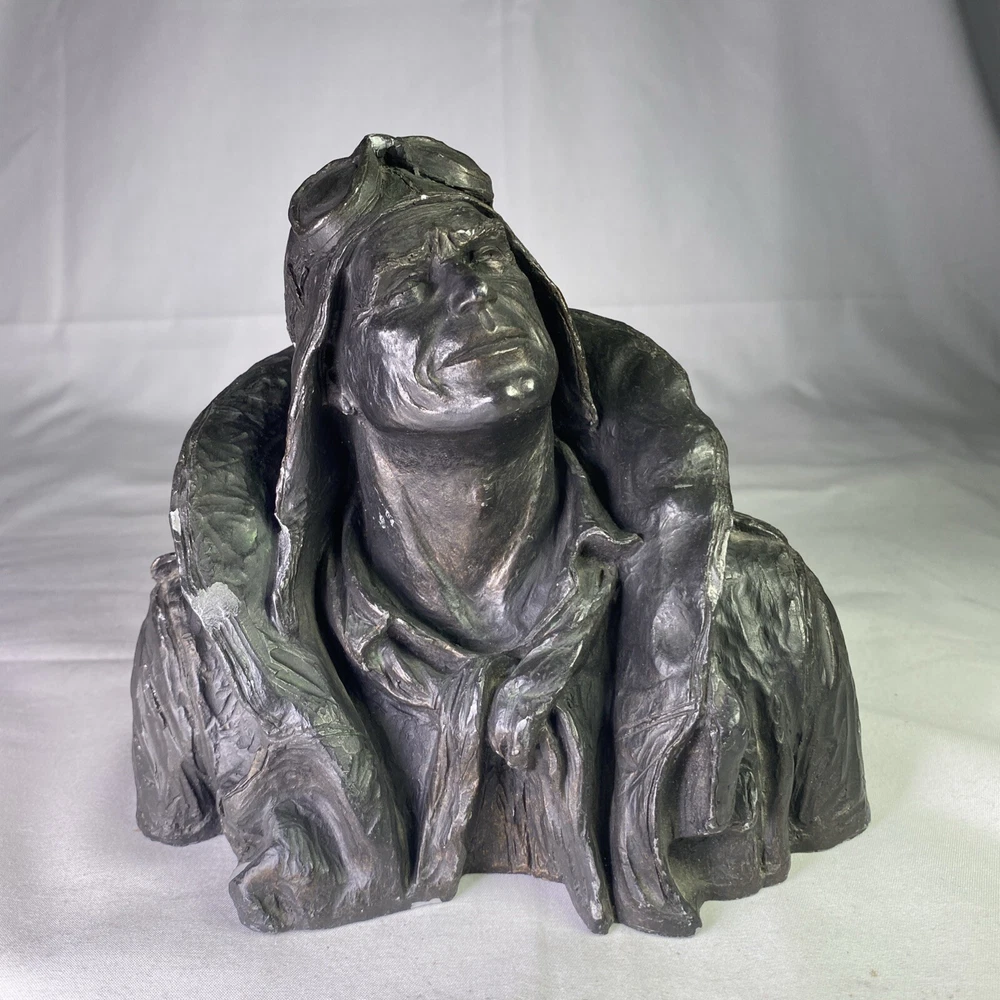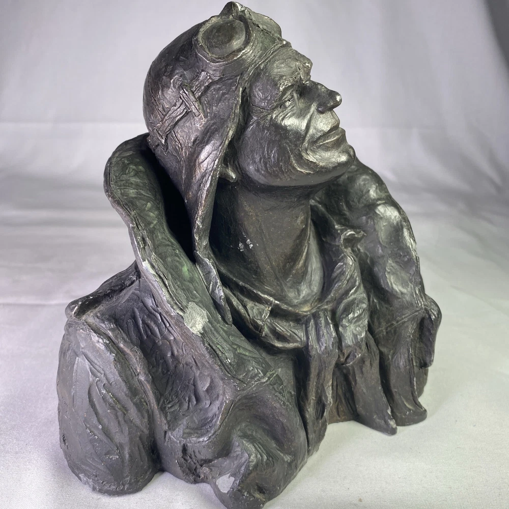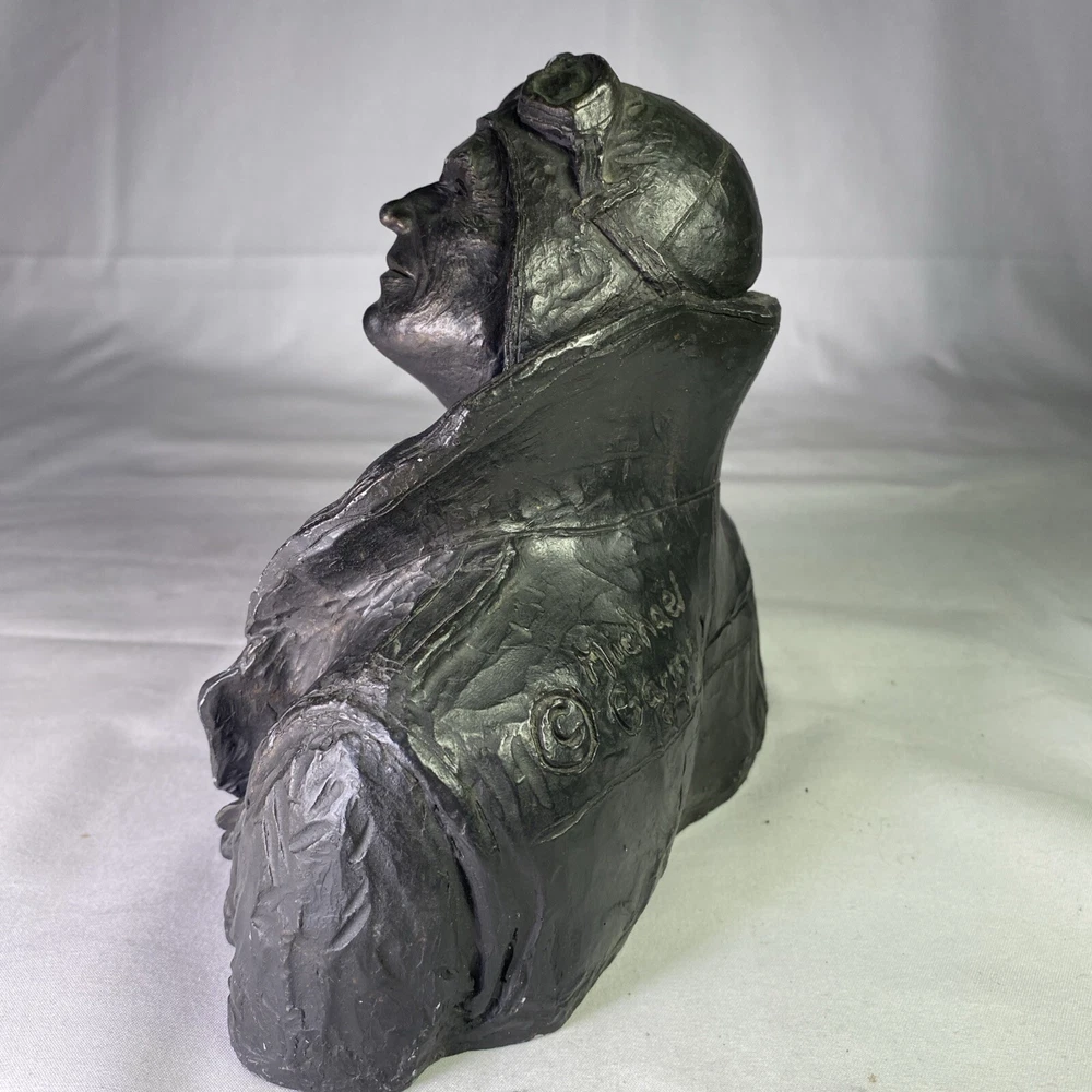 Year of Production:1973UPC:Does not applyArtist:Michael GarmanCountry/Region of Manufacture:United StatesSigned:YesSubject:FiguresType:SculptureMaterial:ResinTitle:Flying LeatherPeriod:Contemporary (1970 - 2020)Time Period Produced:1970-1979Theme:Aviationgtin13:Does not applyItem Height:6 inStyle:Pop Art, Realism, SteampunkOriginal/Licensed Reproduction:OriginalFormat:BustItem Width:8”Culture:MilitarySize:Medium