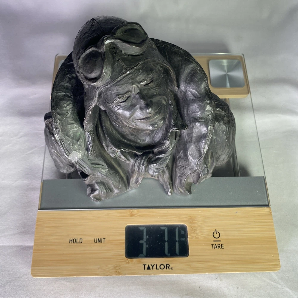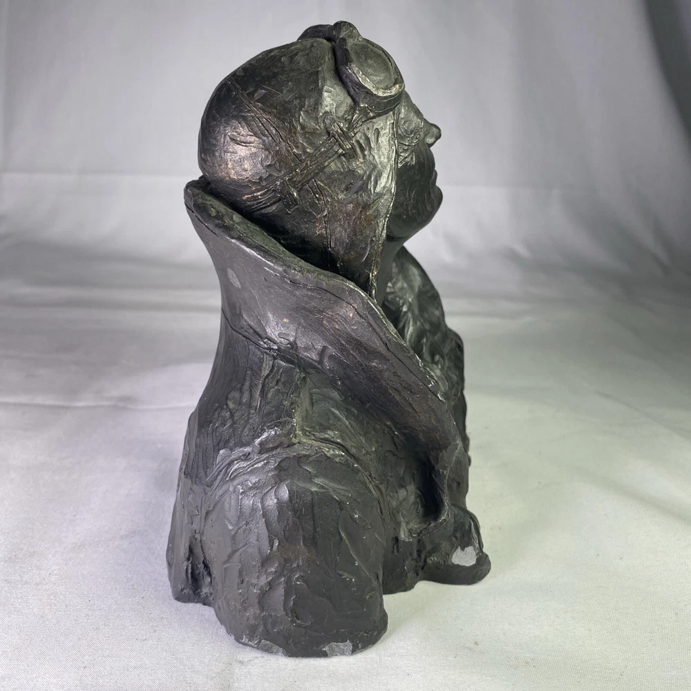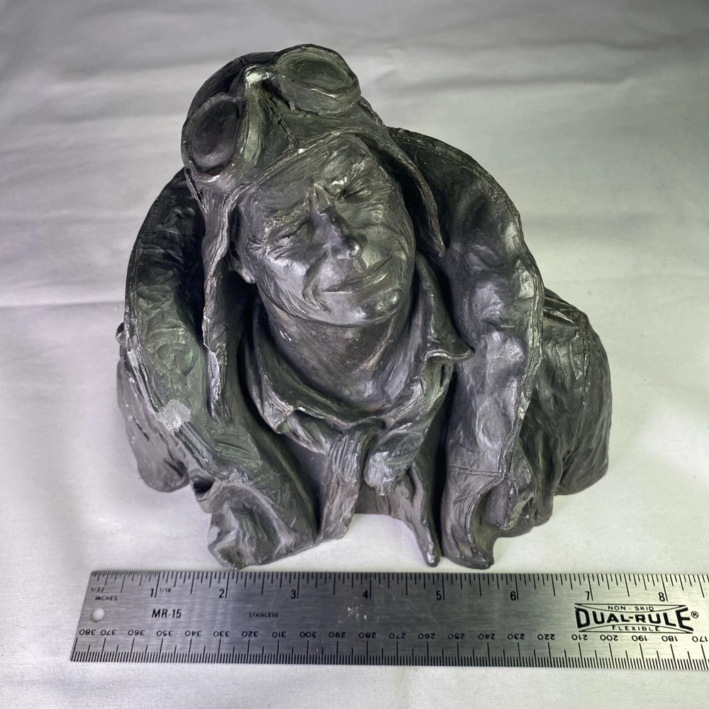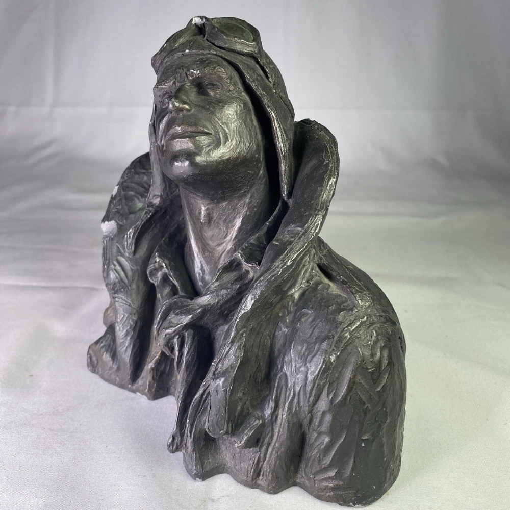 Year of Production:1973UPC:Does not applyArtist:Michael GarmanCountry/Region of Manufacture:United StatesSigned:YesSubject:FiguresType:SculptureMaterial:ResinTitle:Flying LeatherPeriod:Contemporary (1970 - 2020)Time Period Produced:1970-1979Theme:Aviationgtin13:Does not applyItem Height:6 inStyle:Pop Art, Realism, SteampunkOriginal/Licensed Reproduction:OriginalFormat:BustItem Width:8”Culture:MilitarySize:Medium