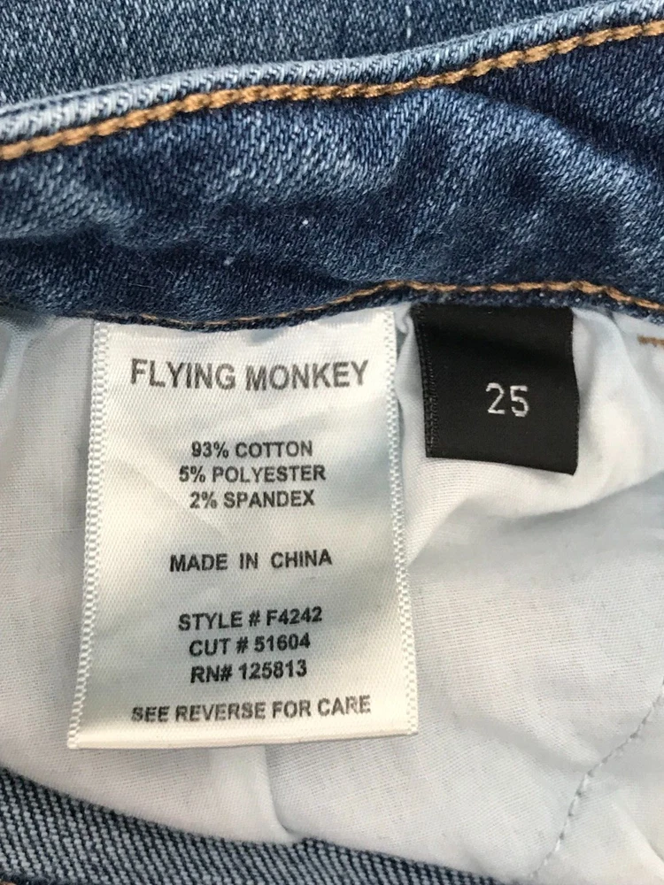 Flying Monkey Womens Jeans Size 25 | Distressed Ripped Skinny Denim Item Description: Brand: Flying Monkey Size: 25 Style: Distressed Ripped Skinny Jeans Condition: Pre-owned Color: Light Blue Description: Upgrade your denim collection with these stylish Flying Monkey Womens Jeans in size 25. Designed for the fashion-forward, these jeans feature a trendy ripped and distressed look that adds a touch of edgy flair to your everyday style. Keywords: Flying Monkey Jeans, Distressed Skinny Jeans, Ripped Denim, Size 25 Jeans, Light Wash Skinny Jeans, Women's Slim Fit Denim, Fashionable Ripped Jeans, Casual Streetwear, Trendy Light Wash Jeans, Stretchy Skinny Jeans, High-Quality Denim, Flying Monkey Fashion, Slim Fit Ripped Jeans