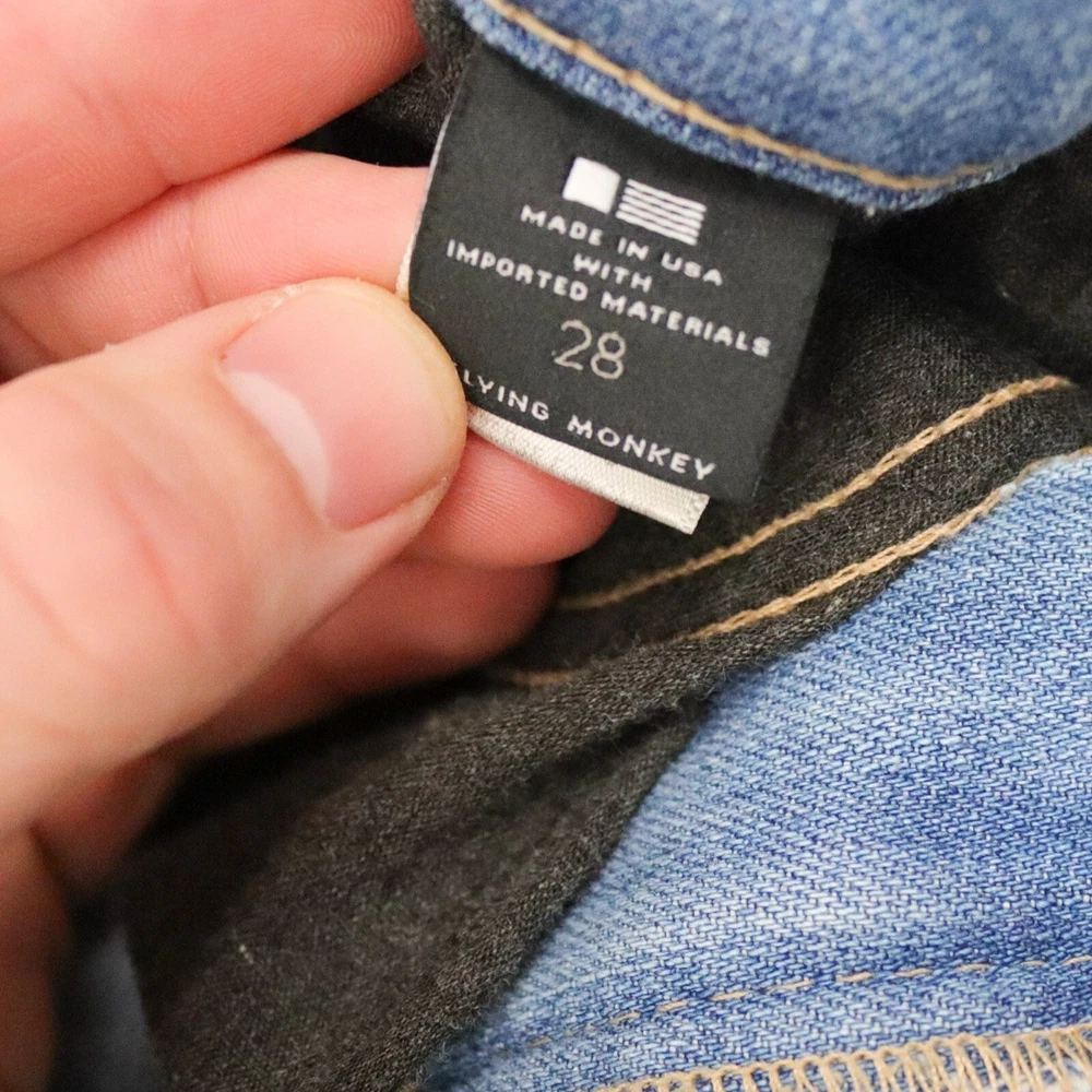 Elevate your denim game with these Flying Monkey Women's Platinum Jeans. Crafted from high-quality cotton denim with a light wash, these slim-fit jeans feature a 5-pocket design with button and zipper accents. The mid-rise jeans have a waist size of 33 inches and an inseam of 28.5 inches, making them perfect for any casual occasion. These jeans are machine washable and feature slimming, easy-care, distressed, shaping, and pockets features. The classic and casual theme of these jeans makes them ideal for summer, fall, and spring seasons. Get your hands on these timeless jeans from Flying Monkey, a United States-based brand. Tag Size: Women’s 28 Best Fit: * Women: 28 Approximate Flat Measurements: * Waist: 16.5” * Rise: 9” * In Seam: 28.5” Condition: No Noticeable Flaws All items are second hand, many being vintage and may have small imperfections. Anything major is noted.