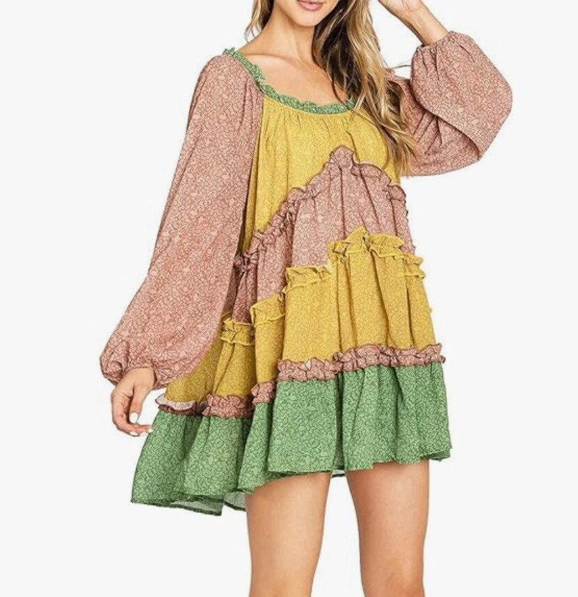 Flying Tomato Love Colette Women's long sleeve Babydoll Mini Dress size medium Laundered per eBay’s standards