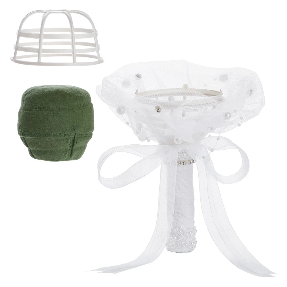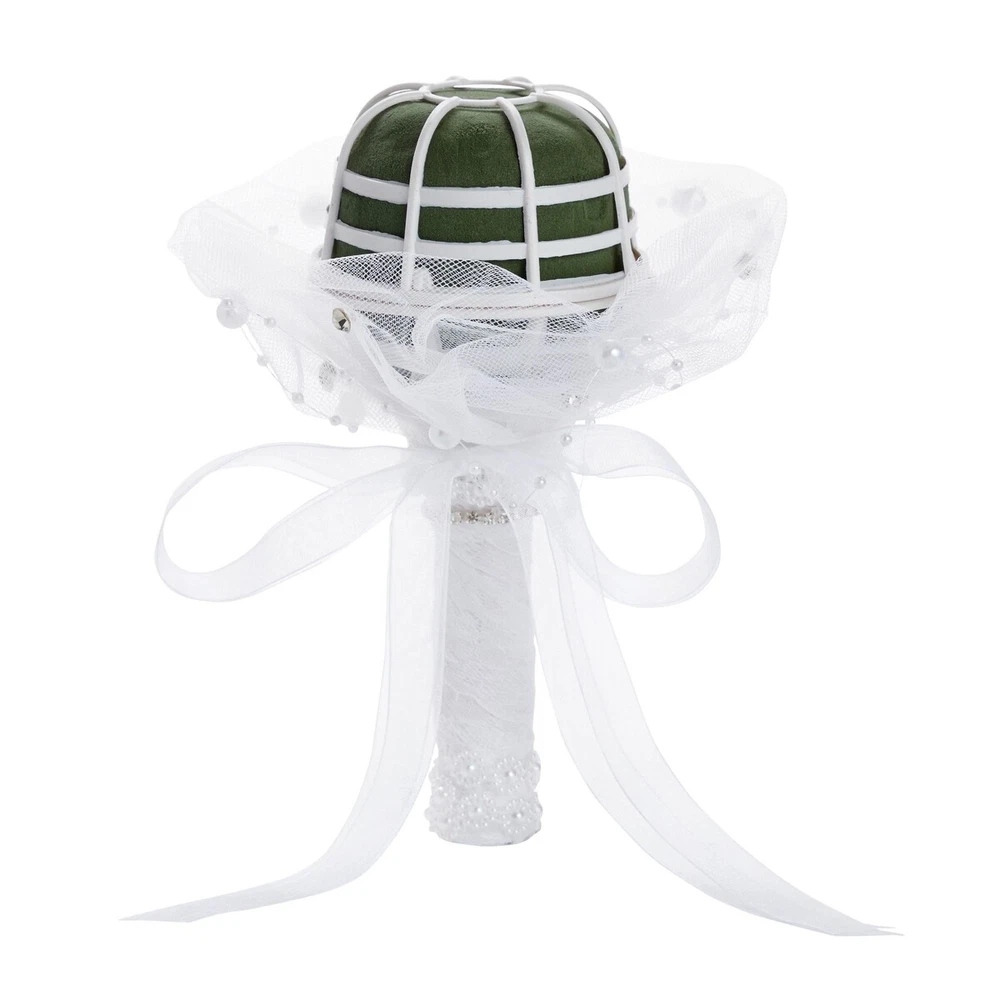 AccStation Use this bouquet holder to create a custom fresh flower bouquet for an upcoming wedding or bachelorette party. The green floral foam is surrounded by white tulle that is decorated with pearls and rhinestones, ideal for displaying fresh roses, daisies, carnations, or sunflowers. To create your own bridal bouquet holders, simply trim the flower stems, then insert them directly into the foam. We do not recommend removing or rearranging flowers once they’ve been inserted. Foam Wedding Bouquet Holder for Fresh, Artificial Flower Arrangements, 3 x 7 In Wedding Bouquet Holder: Add this bouquet holder to your wedding bouquet supplies to ensure the brides beautiful flowers stay fresh and hydrated for her big day Elegant Design: The classic bouquet holder for artificial flowers is adorned with a white lace ribbon wrapped handle, white tulle, shiny rhinestones, pearls, and a white ribbon bow Easy to Use: Use the floral foam for artificial flowers or fresh flower arrangements for the bridesmaids, flower girls, or Maid of honor; simply cut the flower stems then insert them into the green floral foam to secure into place The Perfect Size: This bouquet holder for brides measures 3 x 7 inches, great size to hold your flowers with the green floral foam What's Included: You will receive 1 bridal bouquet holder for your big day in this package