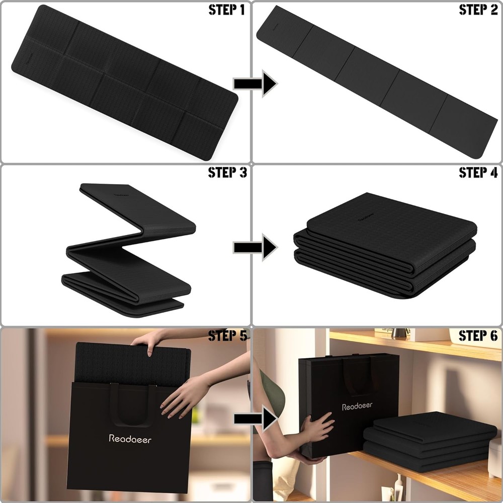 1. Love how portable and sturdy this yoga mat is—perfect for travel or home use! The thick cushioning supports my joints, and the anti-slip surface keeps me steady in every pose. Folds easily and comes with a handy carry bag, making storage a breeze. Great quality for the price!