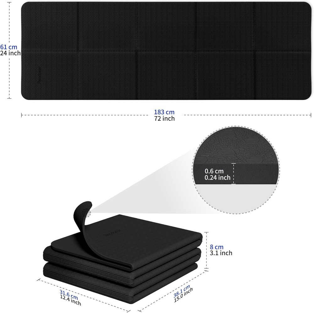 Foldable 6mm Travel Yoga Mat with Carrying Bag Non-Slip Portable