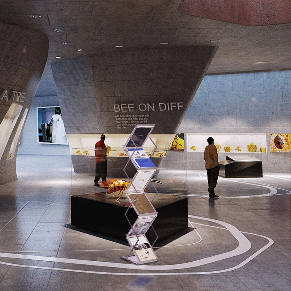 Stylish and ultra-modern, foldable and portable, this Literature Stand is the perfect way to display all A4 size information, brochures, leaflets, magazines and literature pieces . Key Features: ✔Strong frame and shelving for extended durability and long-term use ✔6 display pockets for various brochures, leaflets ✔Fully assembled and easily unfold in seconds ✔Pop-up design for easy folding design for easy storage and carrying ✔Oxford fabric carry bag for easy transportation ✔Displays from both sides in 3 tiers for maximum exposure ✔Hold the printed materials of 8.5x11 inch size or less. Specification ✔ Pocket Dimension : 13” height, 11” width & 1” deep ✔ Overall Height: 59 inches ✔ Overall dimension: approx . 13.8 x 9.8 x 59 inches (LxWxH) This Brochure holder is perfect for use in reception areas, waiting rooms, retail stores, schools, libraries, tourist information centers, trade shows, exhibitions, showrooms and health centers to display brochures, magazines, leaflets, fliers, catalogs and all sorts of information of 8.5x11 inch size or less. What is included: ✔1x 6-pocket Aluminum Brochure Holder ✔1x Carry Bag ✔1x Instruction Why Wait? Click Add to Cart Now!! Display Your A4 sized Printed Information In Style!! STURDY and STABLE: This magazine stand is constructed of solid, brushed Aluminum frame, with Locking tab over the horizontal bar to lock the base into place for stable display performance. POP-UP DESIGN, PRE-ASSEMBLED: The Pop-up Design allows you to Set Up and Collapse the literature holder for easy storage or convenient transportation within Seconds. MAXIMUM EXPOSURE, 6 POCKETS: This magazine rack boasts 13.8” height, 9.84” width & 1” display pocket. Perfectly holds magazines, brochures, flyers, catalog, and other marketing materials & printed literature with A4 paper size 8.46 x 12.2 inches. MULTI-APPLICATION: Cool and modern Brochure Display Stand is the perfect way to keep your display information, brochures, magazines and other printed documents organized and easy to view in exhibitions, trade shows, reception areas, libraries, tourist information centers and much more. CARRYING BAG INCLUDED: The brochure holder folds into a compact size that fits perfectly in the included handy carrying bag for convenient storage and travel. Take it with you to business trips, trade shows, exhibitions or anywhere you want to showcase your promotional information and literature.