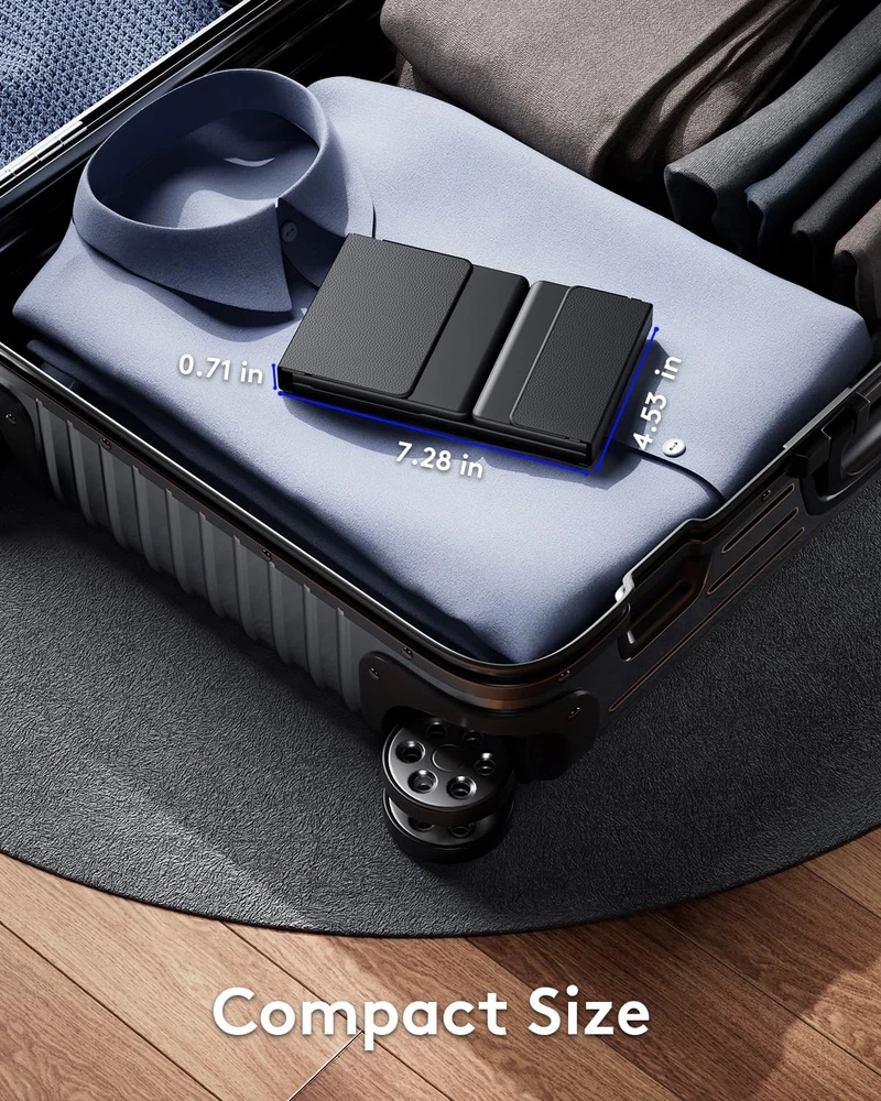 Full-Size Wireless Foldable Backlight Bluetooth Keyboard with Touchpad 【Full-size Folding Wireless Keyboard】 Elevate your workspace with foldable keyboard. Designed with standard size (unfolded size: 13.5 x 4.5 inch) and 0.63 inch standard keys, more in line with finger size and typing habits. Innovative seamless metal hinge, allow you to adapt to its layout anytime and anywhere. Quiet scissor-switch keys and non-slip PU leather at the bottom, so that you can fully concentrate on your work! 【Connect up to 3 Devices】 Streamline your workflow with multi-device Bluetooth keyboard, supports up to 3 connected devices, seamless switching without delay (Bluetooth 5.1 x 3). Compatible with Windows, Mac OS, iOS or Android. You can type, switch, and keep typing on your iPad, phone, tablet, or laptop! 【Multi-touch Trackpad Foldable Keyboard】Upgraded larger sensitive touchpad supports multi-touch, allowing you to control your device without a mouse. Richer and more practical multimedia shortcuts with fn lock function make your work more convenient and efficient! Built-in 500 mAh battery can last up to 110 hours (no blacklight) or standby 300 days after a 2-3 hour charge. One full zcharge is enough time for your short business trip or vacation! 【Adjustable 7 Color Backlight Lighting】Illuminate your workspace with adjustable backlit options. Choose from 7 colors(Green, purple, blue, yellow, white, cyan and red ) and 4 brightness levels (High-Medium-Low-Off) to match your environment and preferences, creating your focused and comfortable atmosphere! 【Delicate Portable Keyboard】Black PU leather appearance, made of ABS+PU material, lightweight but steady, no need to worry about daily wear or scratches. Elegant layout design, excellent tactile feel and simple appearance make it a perfect match for your tablet, phone and laptop. The Great gift for travel and business trips! 【Little Things & Big Convenience】 folding keyboard with backlight, only 11.0 ounces. Palm-sized keyboard can be folded up magnetically and put in your briefcase without taking up much space. Maximum convenience for you with minimum weight and size! Comes with a phone stand and a velvet storage bag, the perfect companion for a folding keyboard. Not just a keyboard, but a travel solution! 【Satisfaction Service】provides you with Email Response all day & Technical Support. If you have any questions, please don't hesitate to contact us!~