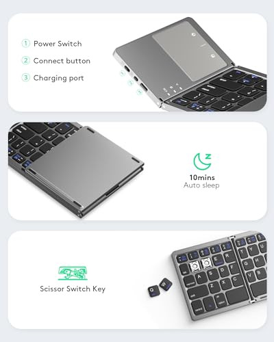 Return Policy Fast Delivery Trusted seller Foldable Bluetooth Keyboard with Touchpad Portable Wireless Keyboard with Stand Holder, Rechargeable Full Size Ultra Slim Pocket Folding Keyboard for Android Windows iOS Tablet & Laptop-Gray Product Description 【Folding Bluetooth Keyboard & Phone Stand Holder】Extremely thin design of the portable folding keyboard allows you to fold it up and put it in your pocket or bag without taking up too much space. The Phone stand holder, best companion for folding keyboard, gives you perfect screen angle. Near-standard size design provides accurate, fast typing, just like the desktop keyboard you are used to. Quiet keys allow you to focus on your work. Perfect gift for travel and business trips! 【Sensitive Touchpad Foldable Keyboard】Upgrade sensitive touchpad supports multi-touch, so you can control the device without using mouse. More convenient and efficient! (NOTE: IOS 13.4 and below or Android 3.0 and below are not supported!!!) Built-in rechargeable battery can last for 48 hours or 560 hours after 2-3 hours of charging. One full charge last enough for your short business trip or vacation! 【Exquisite & Lightweight Portable Keyboard】Dark gray matte exterior, made of ABS+PC material, lightweight but sturdy, without fear of daily wear and scratches. The elegant matte design, excellent touch and clean look make it a perfect match for your tablet, phone and laptop. Only 5.53-ounce, palm-sized keyboard can be folded up and carried around. Provide you with maximum convenience with minimal weight and size. It must be a good choice for editors! 【Stable Connection & Wide Compatibility】 Bluetooth keyboard supports seamless connectivity to all your Bluetooth devices (iOS, Android and Windows). Maintain a stable connection and provide fast response to the device within 10 m. Simply turn on the keyboard and automatically connect to the last connected device. With a keyboard, you can record all your ideas at any time! (NOTE: this bluetooth keyboard is not compatible with various computer sticks) 【Satisfaction Service】 provides you with Email Response & Technical Support. If you have any questions, please don't hesitate to contact us!~ Shipping Returns Payment Shipping Shipping is FREE to all addresses other than APO/PO boxes in the lower 48 states. All our stock ships from US-based warehouses. Shipped via USPS or UPS (depending on location and package weight) Unless stated otherwise, all orders will ship within 24-72 hours of your payment being processed. Check our feedback to see the great reviews of FAST shipping we offer. Returns Seller does not accept returns Payment We currently accept payment via eBay managed payments only. Once payment is cleared, we will dispatch your shipment within 1-3 business days. Please refer to the "Shipping" tab for more information regarding shipping speed to your destination.