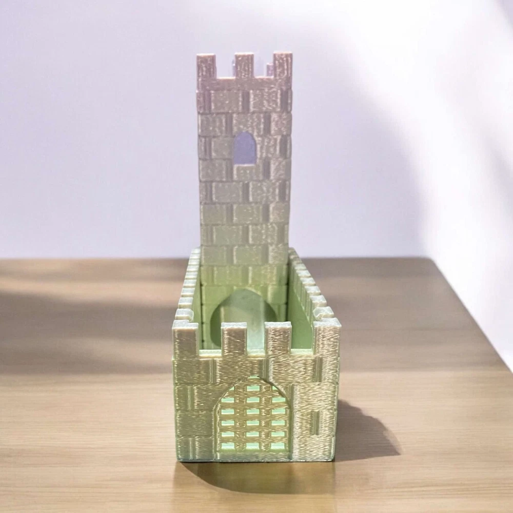 Check out Loops And Layers website at http://www.loopsandlayers.ca for better pricing and more color options! Elevate your tabletop gaming experience with our innovative Foldable Dice Tower . Crafted with precision using advanced 3D printing technology, this gaming accessory is designed to enhance both functionality and aesthetics. Key Features: Space-Saving Design: The foldable mechanism allows for easy storage and transportation, making it perfect for gaming on the go. Width 2 inches, Height (folded) 2.5 inches, Height (unfolded) 5 inches, Length 5.25 inches. Sturdy Construction: Made from high-quality materials, this dice tower is built to withstand the rigors of enthusiastic gameplay. Efficient Rolling: The uniquely designed ramp ensures a smooth and fair roll every time, minimizing dice jumps and maximizing accuracy. Stylish Aesthetic: With its sleek design, the dice tower not only functions flawlessly but also adds a modern touch to your gaming setup. Compatible with Various Dice: Perfectly accommodates a variety of dice, making it an essential tool for RPGs, board games, and more. Why Choose Our Foldable Dice Tower? This foldable dice tower stands out not just for its practicality but also for its elegant design. Whether you are a seasoned gamer or new to the world of tabletop games, this accessory will undoubtedly enhance your gameplay experience. Don't miss out on the chance to add this essential tool to your gaming arsenal. Experience the difference a quality dice tower can make!