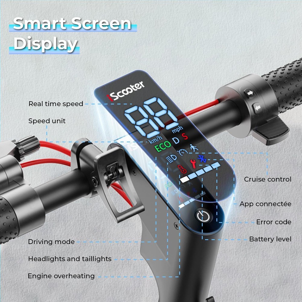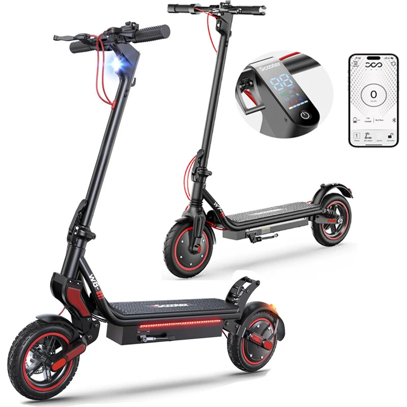 Picture Model W7 W8 Motor 350W Motor 500W Motor Max Speed 22mph 25mph Max Range 18miles 25 miles Battery capacity 36V 7.8Ah 36V 10.4Ah Tires Size 8.5'' 9.3'' Tires Type Pneumatic tire Pneumatic tire Max Loading 264lbs (120kg) 264lbs (120kg) Item Weight 37 Pounds ‎ 47.7 Pounds App X-SCOOTER Application X-SCOOTER Application Light Headlights, Turn Signals, Ambient Lights, and Tail Lights Headlights, Turn Signals, Ambient Lights, and Tail Lights Suspension ‎ Dual Suspension ‎ Dual Suspension Braking Disc brake Rear drum brake, Electronic brake, Front disc brake Climb Ability 15% 15% Water Resistance IP54 IP54 Dimensions 43.3"L x 17.7"W x 44.6"H 46"L x 17"W x 48"H Features: 🛴【High Cost-effective Electric Scooter】 - More affordable than other vehicles. Save your time and money on your commute. High-capacity battery 7.8Ah (W7) / 10.4Ah (W8) With a maximum range of 18 miles (W7) / 25 miles (W8), this electric scooter can help you travel long distances without worrying about running out of battery. 🛴【Powerful Motor & Fast Speed】 - The maximum output of the 500W brushless motor can easily up to Max Speed 25MPH and 10%-15% Hill Grade, which is perfect for urban areas and outdoor sports. 🛴【Safety Design】 - Safety creates wealth. iScooter electric scooter features warning taillights and ultra-bright headlights with a range of up to 15 meters to enhance safety at night. The double braking system features disc braking and EABS regenerative anti-lock braking. 🛴【Folding& Convenient Design】 - One-step folding operation in 3 seconds. electric adult scooter is a perfect choice for giving us another way to get around easily, you can commute across cities, campuses, and offices with ease. Besides, it can be easily folded up and only weights 37 lbs, which is lightweight and small enough to fit in a car trunk. That provides you and your family convenience and happiness in your family trip. Make your life more wonderful with Foldable Electric Scooters. 🛴【Quality Assurance by iScooter】 - We have always strived to provide premium, affordable and reliable products to our customers. 12-month or 180-day for different parts, please feel free to contact us if you have any questions. Your satisfaction is our most motivation. Package includes: 1 x Electric scooter 1 x US Charger 1 x User Manual 1 x Maintenance Card 1 x Tools set