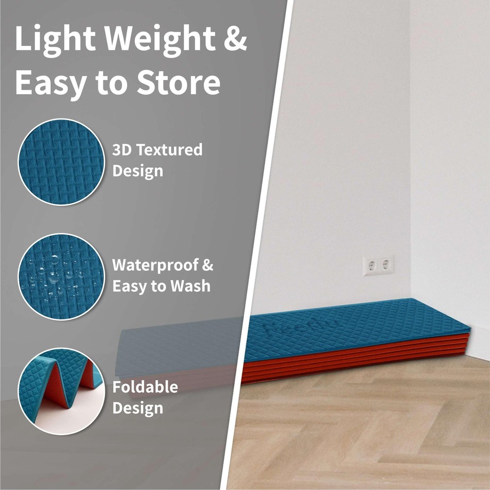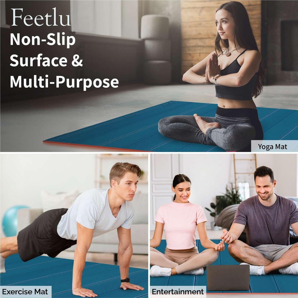 Folding Yoga mat is designed easy to carry and easy to storage for multi-purpose Yoga Pilates, Exercise Workout. Most notably, the gripping property of the mat allows its surface to be non-slip throughout all practices. The Incomparable comfort elevate cushioning and protection for your joints and knees to the next level from minor to major floor exercise fitness sessions and is higher recommended by yoga user. [Non-Toxic & ITS Certified] Certified by ITS and made with non-toxic POE, 's odorless yoga mat ensures a cleaner, safer workout at home or in the studio. [Large & Thick] 's spacious 72" x 24" mat with 1/3" cushioning offers joint protection and comfort, ideal for yoga poses, therapy sessions, HIIT training, and easy travel. [Easy to Fold & Store] 's foldable yoga mat features a smart accordion design that folds quickly, lays flat without curling, and holds firm without any need for a strap. [Non-Slip Surface & Multi-Purpose] A secure, anti-slip design with double texture provides traction during every move. Lightweight for easy transport to the gym, Pilates studio, or meditation class. [100% Customer Satisfaction] Designed with a high-quality, non-absorbent surface that resists sweat and wipes clean easily, our yoga mats offer a worry-free experience. Reach out anytime for a quick solution.