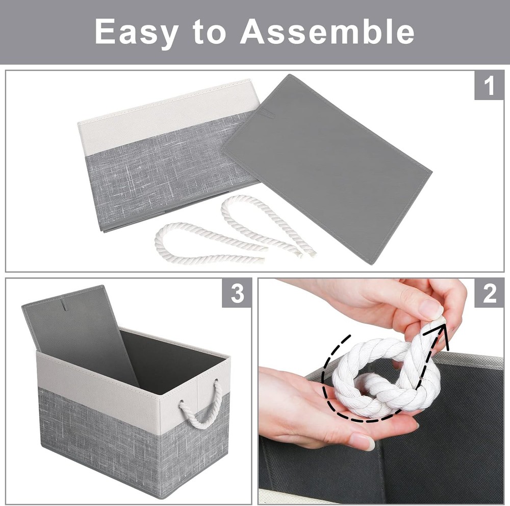 Fab totes Storage Bins [3-Pack], Foldable 3Pack, White & Grey Description Features: Premium Fabric: The storage bins are made of stiff cardboard on the bottom and all sides walls so that the organization bins stand on their own, even when empty; sturdy materials ensure that these storage containers are strong and long-lasting Spacious Capacity: Fabtotes storage basket measures 15" x 10" x 9.5"; this large size enables you to store a wide variety of items to keep your home tidy and organized Reinforced Handle: The bins for organization come with two sturdy rope handles made of soft rope to easily pull or lift the bin.; the organizer bin is stitched with a metal ring where the handle is connected to ensure durability and tear resistance Collapsible Design: The fabric storage cubes can be folded flat when not in use to save space or transport; fabric baskets are easy to clean, simply dust with a soft dry cloth Multi-Purpose: The basket organizer is a perfect option for organizing toys, magazines & books, CDs, clothes & towels; the collapsible storage cubes can be easily stored in closets, drawers, shelves, etc Product Details: Finish Type: white Unit Count: 3 Count Capacity: 33.59 Liters Manufacturer: Fab totes Product Dimensions: 9.5 x 15 x 10 inches Item Weight: 2.83 pounds Country of Origin: China Item model number: FT0000005 Finish types: white Number of pieces: 3 Batteries required: No Color: White & Grey Material: Cardboard Product Dimensions: 15"L x 10"W x 9.5"H Item Weight: 1.29 Kilograms Brand: Fab totes Handling We will ship all orders within 3 business day of payment. Delivery We take pride in offering fast and reliable delivery for your orders! We are committed to getting your products to you as quickly as possible. Generally, we would like to inform you that all orders will be delivered to you within 1-3 business days after processing.However, in some cases, delivery times may vary depending on the buyer's location. Especially in remote or rural areas, the expected delivery time may be extended. In such situations, we do our best to ensure that your order reaches you as quickly as possible.If there are any delays, we will be happy to contact you to explain the situation. Our goal is to enhance your satisfaction with our fast delivery times. We work diligently to ensure that your order arrives safely.Trust us and enjoy our speedy delivery! Return Policy All items qualify for returns within 30 days of receipt. Buyer is responsible for return shipping on any item that is not damaged. Feedback We take our reputation seriously, we buy and sell online, so we understand the value of trust. If you are unsatisfied with your order, please contact us and we will work with you to resolve it to your satisfaction.