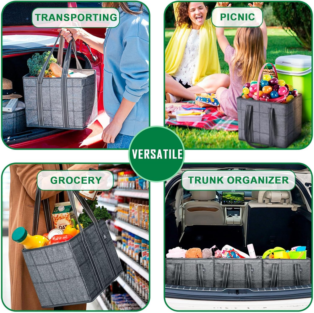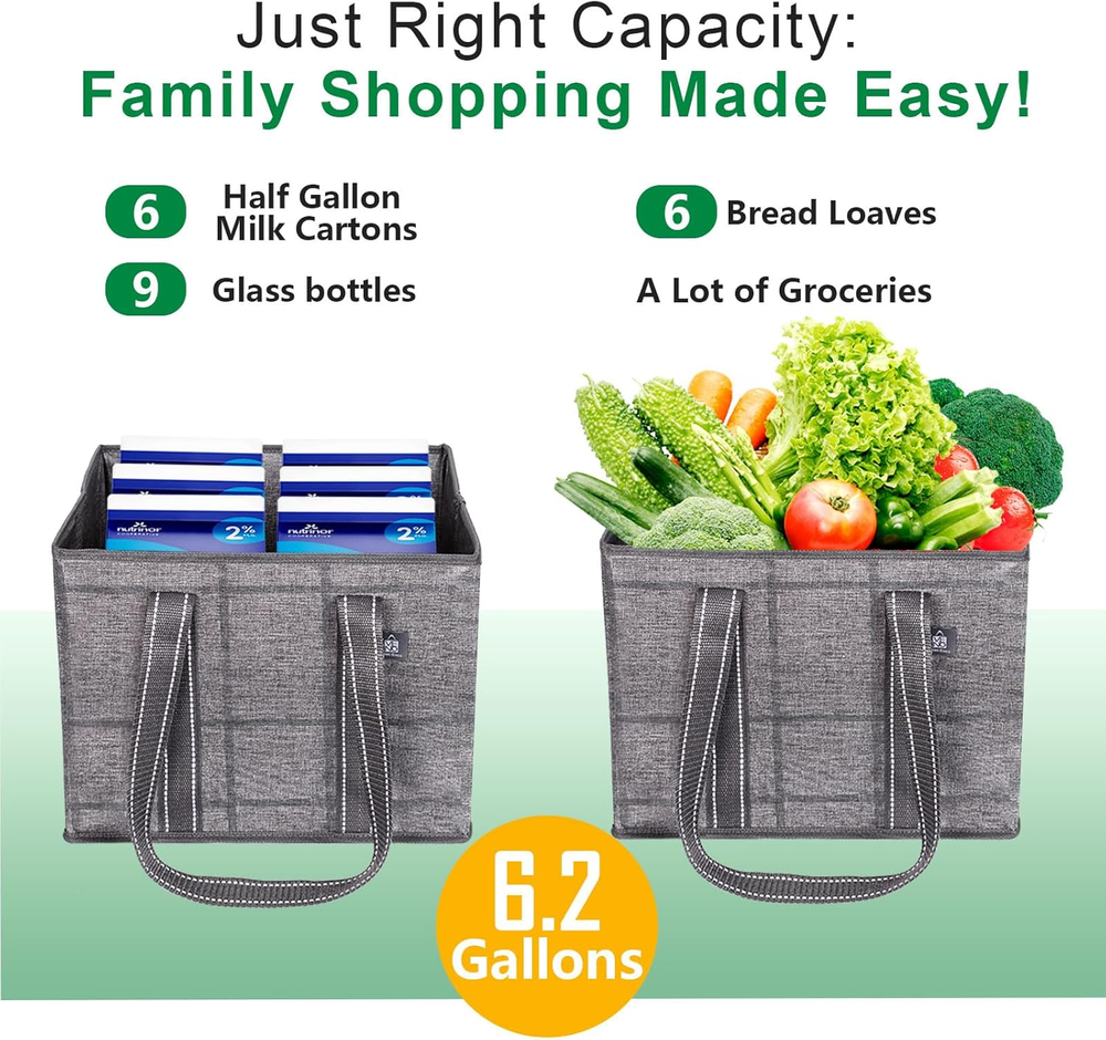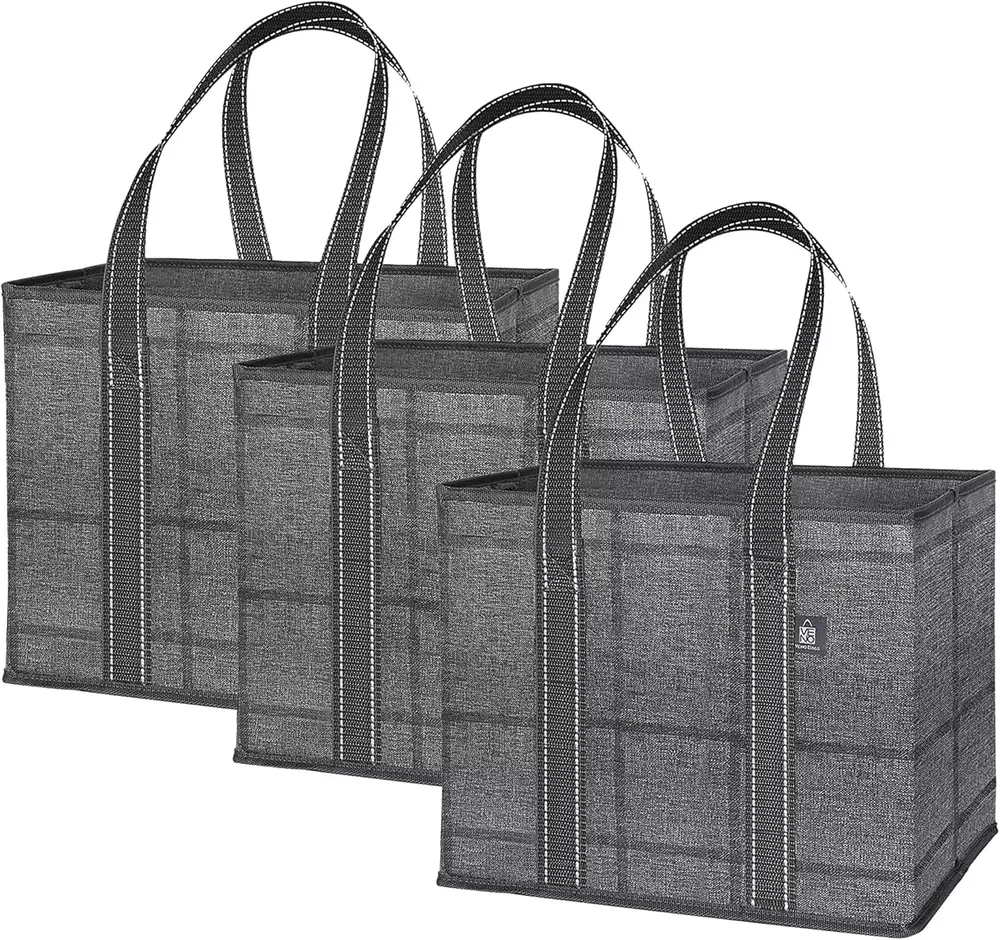 Stands Upright & Stays Open with Hard Bottom – Avoid worrying about your floppy grocery shopping bag falling over in the trunk or struggling to keep it open. Shop easily with a sturdy box-shaped bag by VENO which contains a hard bottom and prevents your bags or groceries from falling over, rolling around, or getting smashed in your car trunk, shopping cart, or at checkout. Reach in whenever you need, easily and quickly load and unload, and keep items put with its amazing standing ability. Organize As You Shop – Shop easier by placing 3 bags in your shopping cart and organize purchases as you go. Separate your delicate bread or eggs and fresh fruits and veggies from your frozen meats and heavy drinks. Take advantage of the versatility and place them in your car trunk as organizers for miscellaneous items or use as laundry baskets, storage bins, utility bags, food delivery bags, or even Christmas gifts! Dimensions - 13” W x 11” H x 10” D. Spill-Proof & Easy to Clean – You don’t have to be concerned about getting your grocery bag dirty or stained with our water-resistant and durable 220 GSM PP-woven material which is extremely easy to maintain. Simply use a sanitizing wipe or damp cloth to clean both the interior and exterior and follow by air-drying. Take and use our large bag to transport goodies for outdoor activities and some fun in the sun at the beach, picnic, or camping trip! Rigid & Sturdy Structure – Don’t worry about your bag ripping from bulky items or sharp objects. Enjoy hassle-free shopping with our heavy-duty and reusable grocery tote bag which contains rigid hardboard sides for puncture-resistance and maintaining its sturdy box structure. Carry by the long and strong poly webbing handles sewn to the bottom webbing edges for maximum durability. Hold up to 40 pounds with uncompromised quality designed to hold plenty, but not be overloaded at checkout! Collapsible For Easy Storage – Collapse and fold flat into a small size to save space and store compactly in your car trunk, back seat pocket, kitchen drawer, or cabinet. You don’t have to worry about VENO bags taking up and crowding space. Eliminate the need for disposable plastic bags with stylish, reusable, and sustainable bags by VENO. Product Description Choose sustainable shopping with VENO reusable grocery bags! Great Alternative to Disposable Bags: Go Green With VENO! With a set of 3 VENO bags, you can replace 15 disposable bags each trip, significantly reducing plastic waste. Stable Design for Effortless Loading Hardboard Bottom and Sides The removable hard bottom panel and rigid hardboard structure maintain the bag's shape, providing stability and keeping items organized and secure when filled. This sturdy design enables the bag to stand upright, even when empty, making loading and unloading much more efficient. Durable and Spacious Alternative Great Alternative to Disposable Bags! VENO offers an impressive capacity, making them an excellent alternative to plastic bags. A single 3-pack of our bags can replace up to 15 plastic bags, reducing waste. Designed for durability and convenience, these bags are perfect for all your shopping needs, helping you go green effortlessly. Water-resistant and easy to clean Water-resistant material allows for easy cleaning, great for relaxed days at the beach! A Bag for Every Lifestyle! Multi-Use Reusable Bags: Infinite Possibilities These reusable bags are ideal for carrying groceries, organizing home essentials, car trunk organization, and enjoying outdoor activities. Versatile and sustainable, simplifying your life while aiding the environment. VENO Products Add to Cart Add to Cart Add to Cart Add to Cart Add to Cart Add to Cart Customer Reviews 4.8 out of 5 stars 3,962 4.8 out of 5 stars 3,962 4.8 out of 5 stars 3,962 4.7 out of 5 stars 1,972 4.7 out of 5 stars 6,433 4.6 out of 5 stars 340 Price $22.99 $ 22 . 99 $21.99 $ 21 . 99 $21.99 $ 21 . 99 $21.99 $ 21 . 99 $21.99 $ 21 . 99 $22.99 $ 22 . 99 Size (Inches) 13W x 11H x 10D 16W x 12H x 10D 13W x 11H x 10D 15.8W x 13H x 8.7D 15W x 14H x 10D 15W x 14H x 10D Safely Hold 40 lbs 40 lbs 33 lbs 50 lbs 45 lbs 45 lbs Capacity 6 Gallons/23 Liters 8.3 Gallons/31.4 Liters 6 Gallons/23 Liters 7.8 Gallons/29 Liters 8.8 Gallons/33 Liters 8.8 Gallons/33 Liters Collapsible ✔ ✔ ✔ ✔ ✔ ✔ Hard Bottom ✔ ✔ ✔ ✔ ✔ ✔ Cardboard Inserted Sides ✔ ✔ ✔ ✘ ✘ ✘ Insulation ✘ ✘ ✘ ✔ ✘ ✘ Extra Side Handles ✘ ✔ ✘ ✘ ✘ ✘ Material PP-Woven(heavy duty and stiff) PP-Woven(heavy duty and stiff) Non-Woven (flexible and soft) PP-Woven(heavy duty and stiff) PP-Woven(heavy duty and stiff) PP-Woven(heavy duty and stiff) Best For Shopping, Organizer, Picnic Shopping, Organizer, Picnic Shopping, Organizer, Picnic Shopping, Food Delivery,Picnic Grocery, Beach, Office, School Grocery, Beach, Office, School