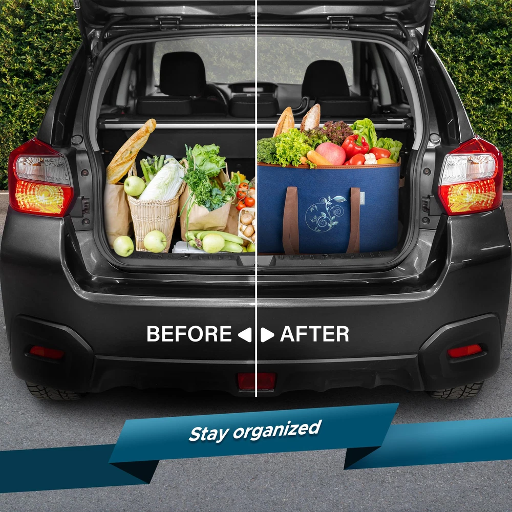 MULTIPURPOSE REUSABLE TOTE BAGS: Designed for on-the-go and eco-friendly lifestyles. A heavy-duty collapsible tote, box bags, baskets that are great for grocery, shopping, beach trips, picnics, camping, potlucks, travel, farmer’s market, and so much more. These tote bags are presentable and well-designed that can also be utilized as souvenirs, favors or gifts during holidays, birthdays, and special occasions. STRONG, REINFORCED HARD BOTTOM: Utility large tote bags that are designed with fold-out solid hard bottom that provides enhanced stability, balance, and control when you’re carrying dry food goods, bottles, and bulk groceries. Each bag can support up to 60 lbs. Durable as food container carrier for transport and travel. LIGHTWEIGHT with LONG SHOULDER HANDLES: Woven with a thick, non-woven fabric, compact and foldable for easy to go travel use. Features a well-made handle that is durable and a 12-inch-long shoulder handle so you can carry it more easily and comfortably when it’s full. SHOPPING CART, TRUNK, or CLOSET STORAGE ORGANIZATION: Has extra-large capacity that can fit 8 milk cartons (1.89L). Tote bags can also be used in areas where you need extra space-saving storage because this is suitable as storage bin and organizer for bedroom closet, kitchen, pantry, car, trunk, and children’s toys. Sturdy shopping tote bags that can fit perfectly in standard shopping cart and car trunk. ECO-FRIENDLY and SUSTAINABLE SUPPORT: A grocery shopping bags that offer long-lasting reusability which is important for reducing reliance on plastic bags and paper bags. Linings and handles are supported using polyurethane materials which are sustainable, more eco-friendly and no animal products used in any part of its creation. Overall endorses an environmental and vegan friendly tote bag. CARE DIRECTIONS: These tote bags are easy to maintain. To keep it looking new, clean with a damp cloth then simply air dry. When not in use, it is easy to . Hard bottom board is enclosed and can be folded easily. Ideal space saver when folded flat.