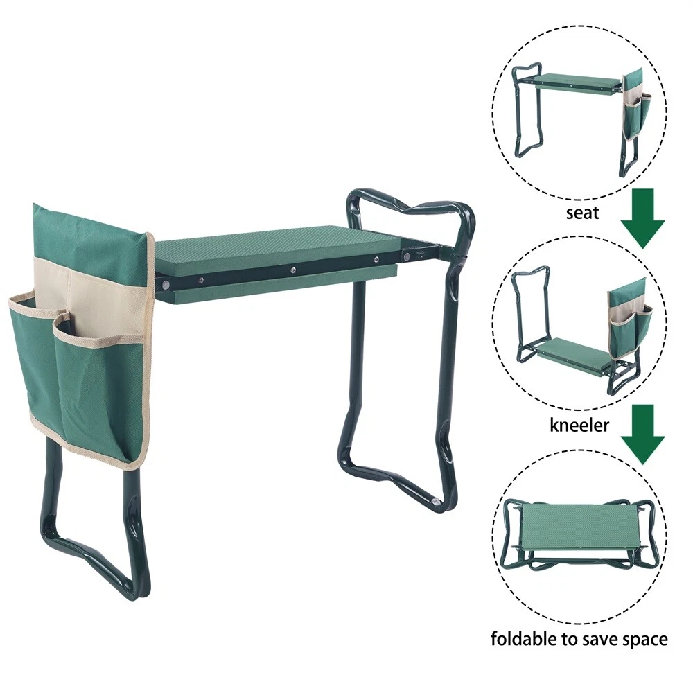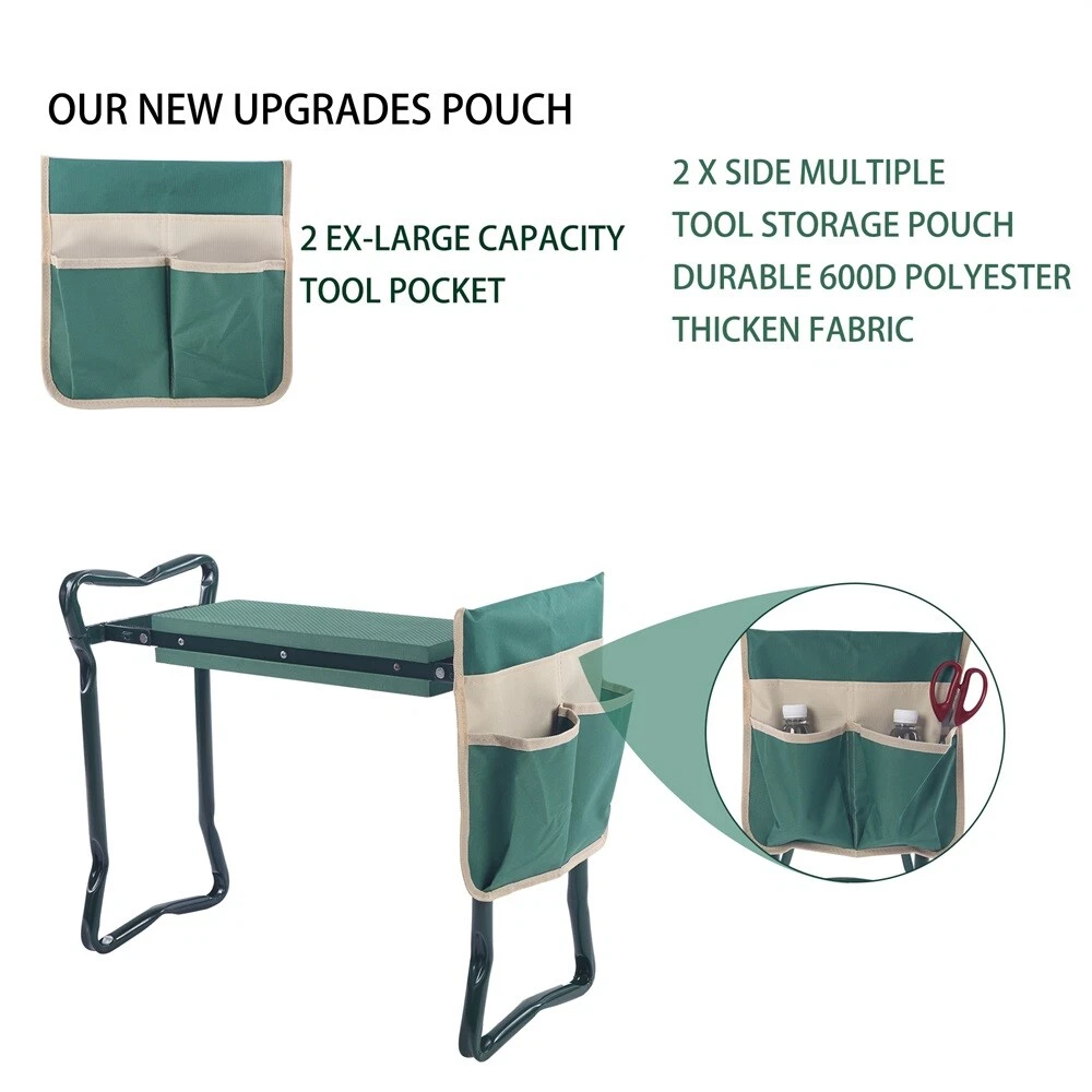 Garden Kneeler Seat w/Kneeling Soft Eva Pad &Tool Pouch Folding Portable Bench