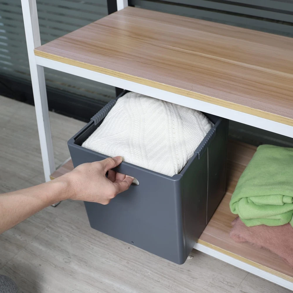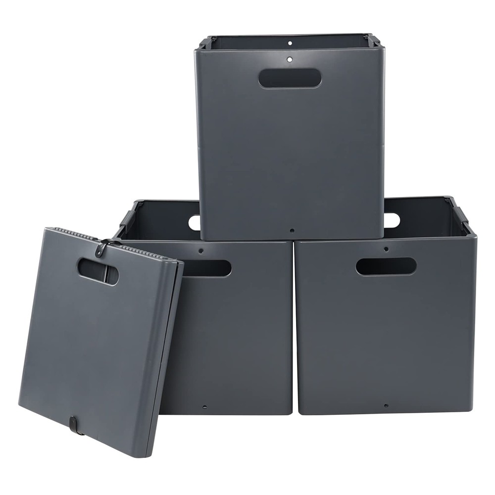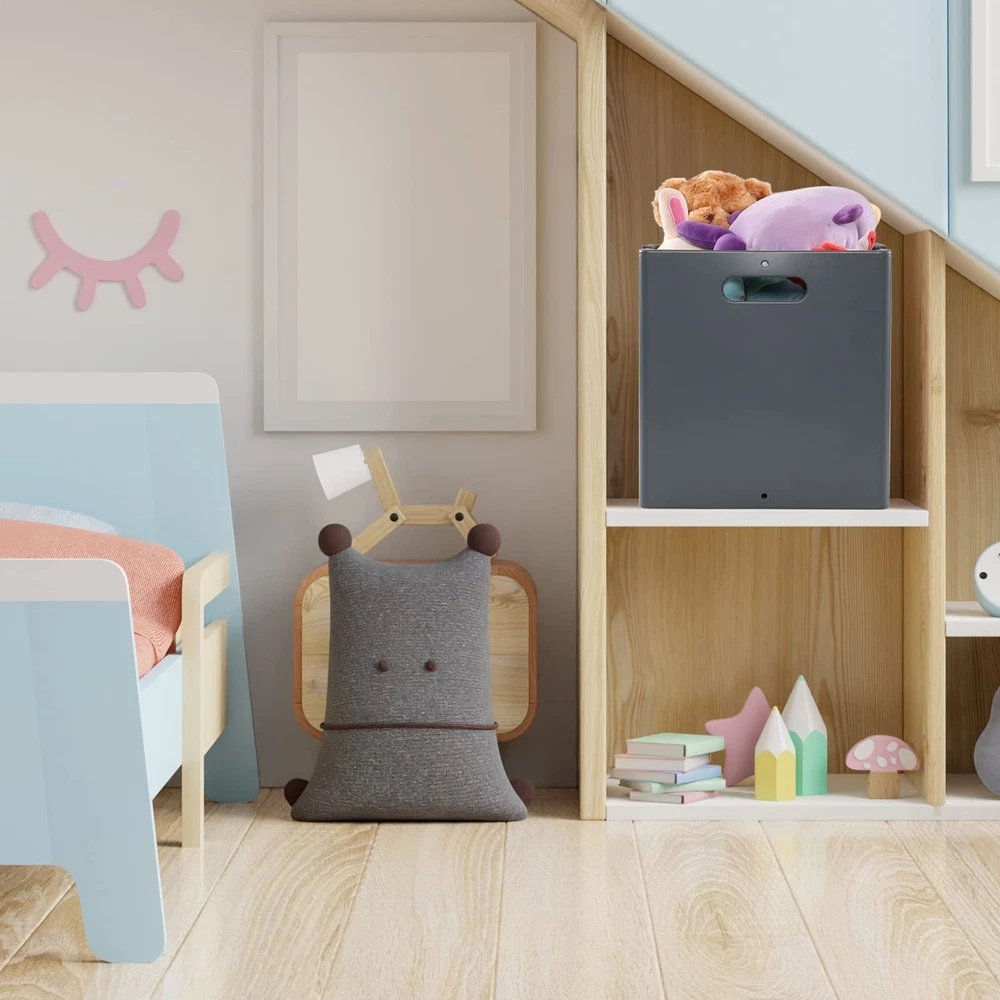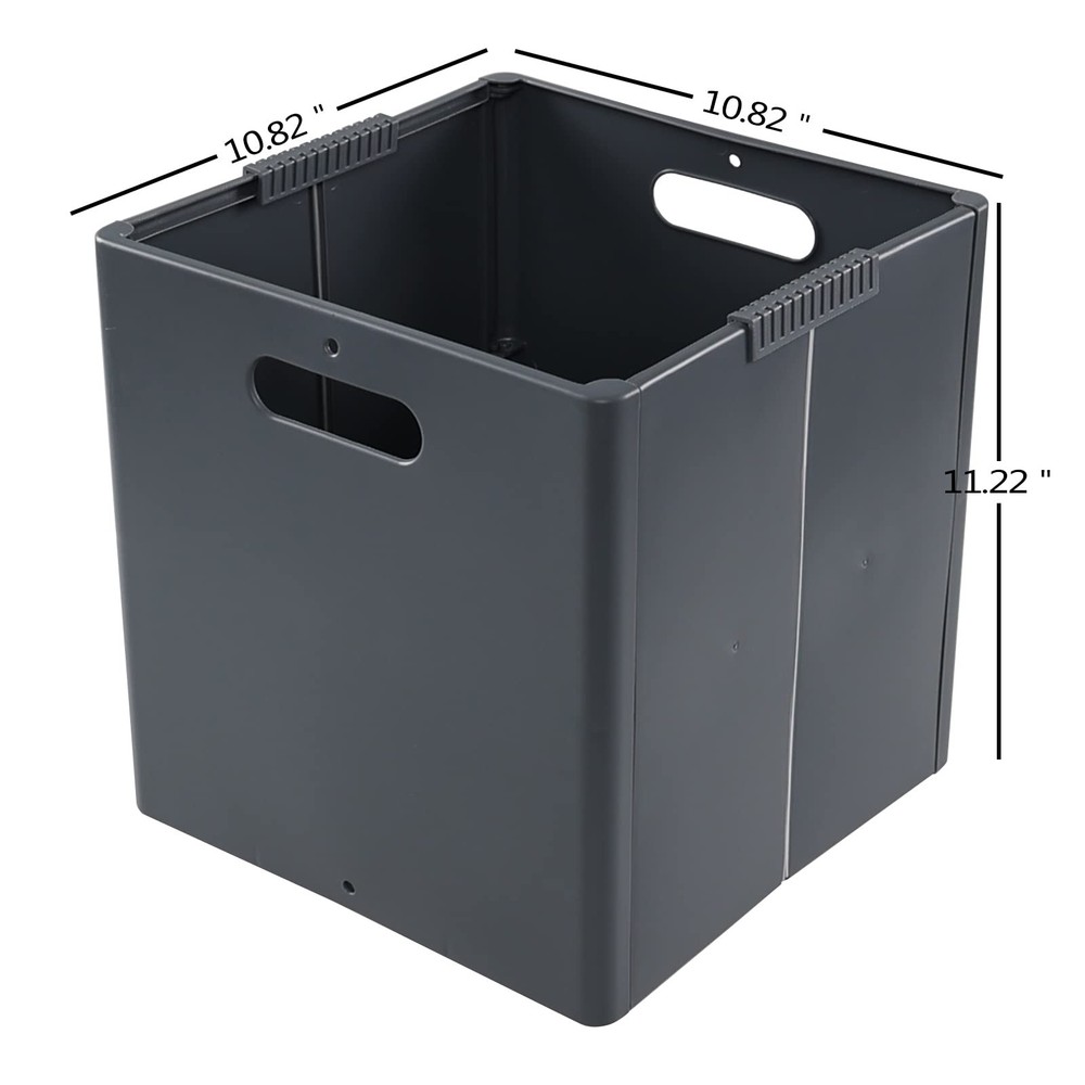Open size: 10.82" x 10.82" x 11.22" This storage cube is foldable, which can save space when not in use, can be used to store toys, clothes, books, snacks, etc. Made of durable plastic material, lightweight and easy to clean Cutout side handles for easy access, suitable to be used as drawers with cube storage organizer shelf Waterproof, can be used for a long time, without residual odor due to humidity