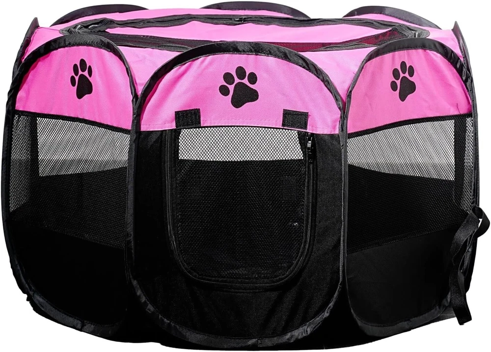 Product Description 😺Safe & Reliable: The cat playpen is made by oxford fabric, light and durable. Through the black mesh on the top and the other 8 sides, you can see each other easily, which will put both your mind at peace. The airy ample space can also prevent you pets from feeling stifling or oppressed. A perfect place for your pets to deliver, recover or rest. 🐶Pop-up & Portable: Our pet tent can be rapidly unfold or fold without any assembly of metal parts. For easier carriage and storage, you can fold it up when unused. Quickly make a lounge for your tired pets after indoors/outdoors games. Besides small cats, small dogs, kittens and puppies, our cat playpen is also suitable for rabbits, ferrets and guinea pigs. 😽Multipurpose & DIY: The skylight and the sidedoor would be a convenient way for you to interact with your pet or arrange interior space. You can put diaper pads inside the cat pen under newborn pets for efficient clean-up. As they grow up, this pet playpen can also be helpful for their potty training with a cat litter box in it. 🐶Suitable Size & Space: Our folding pet tent size is 29"*29"*17", which means it won't take up much space and easy for storage. Moreover, the interior space is big enough for your pets. For instance, a Devon Rex and her kittens has only taken half space of cat playpen. There is enough space for kittens' daily activities or cat furnitures(cat litter box, scratching post, cat bowl...) 😸Release Nature: Pets are born curious and engergetic. Instead of confining them in cages, it's better to prepare a safe and comfortable lounge for them after their playtime. There is enough space in the tent to put a cat scratch pad or molar rod for growing kittens or puppies. They can entertain themselves long enough there. The video showcases the product in use. The video guides you through product setup. The video compares multiple products. The video shows the product being unpacked. H&E Cat Playpen. Multipurpose and Portable Pet Playpen. Our Cat Playpen can be used in a variety of scenarios. We also use it ourselves and always take this playpen with us when we go out. We started using it because our Jinni(Devon Rex) was accidentally pregnant. As it was her first birth, we filmed her and the kittens. The video showcases the product in use. The video guides you through product setup. The video compares multiple products. The video shows the product being unpacked. A safe delivery room Jinni was very satisfied with the new house and quickly adapted to it, even without our company. A space of appropriate size and good air permeability usually brings enough sense of security. We often keep an eye on Jinni. Through the playpen, it's convenient. The video showcases the product in use. The video guides you through product setup. The video compares multiple products. The video shows the product being unpacked. A safe Nursery Room for mom and her kittens Jinni is a mom officially! Her kittens are healthy and cute! The playpen becomes their Nursery Room and protects the kittens safely. The video showcases the product in use. The video guides you through product setup. The video compares multiple products. The video shows the product being unpacked. A safe, warm and comfortabel kitten playpen Playpen becomes the kitten's room. Safe, warm and comfortable. It has enough space for them to have a frolic. The kittens can't wait to explore the outside world. The playpen is an effective way to prevent them from getting lost or getting into danger while exploring unattended. The video showcases the product in use. The video guides you through product setup. The video compares multiple products. The video shows the product being unpacked. A pet toilet - help them develop a good habit We added a playpen, which sits next to the original one, as a large toilet. They need to explore and train under Jinni's supervision so that they can correctly find the toilet when needed in the future Previous page Next page 1 Anti-Scratching 2 Breathable & Durable 3 Mosquito Control 4 Sturdy Structure Previous page Next page 1 Product Size 2 Installation Steps 3 Indoor Use 1 4 Indoor Use 2 5 Ourdoor Use