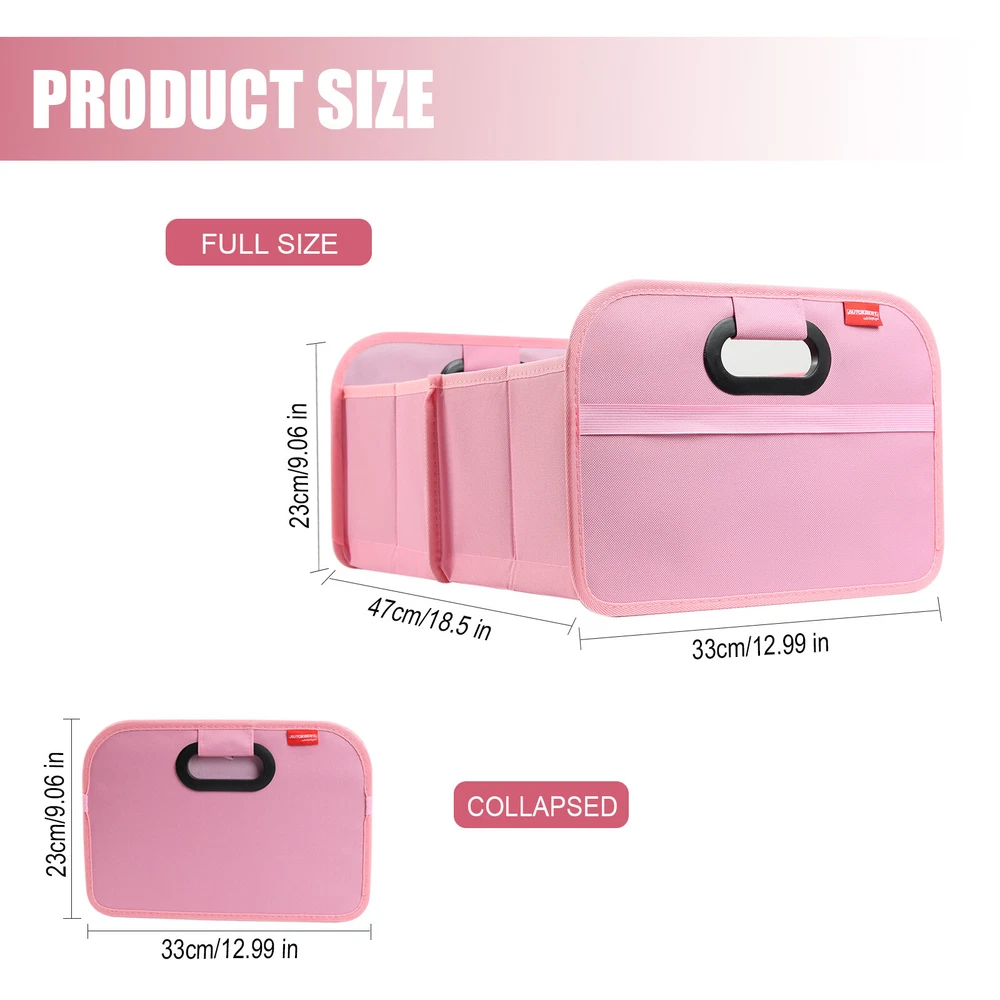 Trunk Cargo Organizer for Car Storage with Reinforced Handles for Suv Foldable & Features: FOLDABLE DESIGN : This car storage organizer has a foldable design that allows it to be folded up when not in use, saving space in the trunk of the vehicle. This design allows the bag to effectively reduce the space it takes up when not in use, improving space utilization in the trunk of the vehicle. MODERATE CAPACITY : The car trunk tidy has a certain capacity, suitable for storing tools, first aid kits, shopping bags and other items needed for daily driving. This moderate capacity design meets your most trunk storage needs, making the organizer bag able to meet your practical needs. DURABLE MATERIAL : It is usually made of wear-resistant material that can withstand a certain amount of weight and ensure durability for long-term use. This choice of material ensures the longevity of the organizer bag and also enhances its weight-bearing capacity, making it more practical. EASY TO CLEAN : The surface finish is usually smooth and easy to clean and wipe down, keeping the trunk tidy for car. This design makes the trunk organizer easier to clean during use and reduces the cost of use and maintenance for the user. EASY TO INSTALL : Designed with user convenience in mind, the car trunk storage organizer can be installed or removed without any tools. This easy installation allows users to easily install the bag into the trunk of the vehicle, improving your experience. Specifications: Color: Pink Material: Oxford Cloth Dimensions Open: 18.5” x 12.99 x 9.06” /47cm x 33cm x 23cm Dimensions Folded: 1.18" x 12.99" x 9.06" /3cm x 33cm x 23cm Fitment: Universal - Fits Almost Any Trunk Package included: 1*Trunk Organizer We accept Paypal and majoy credit cards payment When you place an order, please choose a shipping method and pay for the order including the shipping fee within 48 hours. And please make sure your current address correct after your payment within 1-2 days! About Shipping 1. Receiving time = Processing time + Shipping time 2. Processing Time: Around 1-3 Days 3. Shipping Time: 15-26 Days By Air Mail 3-10 Working Days By Express We do not guarantee delivery time on all international shipments due to differences in customs clearing times in individual countries, which may affect how quickly your product is inspected! Important Notice >Transit Time Is Best Estimated But NOT Guaranteed As Transit Time Varies >Orders may be subject to import taxes, customs duties and fees levied by the destination country.Additional charges for customs clearance must be fulfilled by the recipient; We no control over these charges, nor can we predict what they may be. 100% Customer Satisfaction Is Our Top Priority For Any Reasons You Are Not Satisfied With The Products Within 30 Days Of Purchase, Return Or Exchange Can Be Issued, Customers Are Responsible For The Return Shipping Cost And Subsequent Replacement Shipping Cost For An Exchange Item. Replacement Item Will Be Processed And Shipped Upon Return And Inspection Of The Original Item. Return Items Must Be In Their Original Packaging And Unused Condition, Or They Will Be Rejected And Sent Back To You. Due To The Nature Of The Products We Sell, We Carefully Inspect All Packages Prior To Shipping. All Of Our Products Are Sold As Brand New, All Damaged Products Are Considered Damaged During Transit. If You Received A Damaged Or Broken Item, Please Save All Packaging Material And Paperwork And Contact Us Immediately So We Can Help You With The Damage Claim With The Shipping Carrier. No Claims Will Be Honored After 14 Days Upon Item Receive. Digital Photos Will Be Required For All Cases. All Products Come With A 60 Days Limited Warranty Against Manufacturer’s Defects. No Exchange Will Be Issued On Products That Have Been Damaged In Any Way. Warranty Does Not Applied To Improper Installation, Water / Fire Damage, Modification, Or Any Acts Of Nature . If you have any question or concern, please feel free to contact us via eBay massage directly, we will get back to you as soon as we are available ATTENTION : We do not answer any emails over the weekend Please send message to us.We will reply your message in 24 hours, Our working time: 9:00 AM-22:30 PM (GMT+ 08:00 Beijing) 1:00 AM -14:30 PM (GMT+ 00:00 London) 19:00 PM-08:30 AM (GMT- 06:00 USA/Canada) Why Choose us? 1. A tremendous variety of products-- With over 200,000 items in stock, we are one of the world's largest online stores in automotive aftermarket product sector. You'll have more choices than what you can ever imagine. What's more, we're updating with over 100 new arrivals per month! 2. Affordable prices -- we are offering the latest car parts and accessories for almost 20 years, we're always keeping up with the newest trends, while most importantly, making the prices as low as we can. 3. Free worldwide shipping -- Yep, you won't believe that you'll enjoy free worldwide shipping with us (unless stated otherwise),it's not a joke,but an absolute truth. 4. No-question refund and return-- Anything wrong issuing quality and breakage can be returned or refundable. Features: FOLDABLE DESIGN : This car storage organizer has a foldable design that allows it to be folded up when not in use, saving space in the trunk of the vehicle. This design allows the bag to effectively reduce the space it takes up when not in use, improving space utilization in the trunk of the vehicle. MODERATE CAPACITY : The car trunk tidy has a certain capacity, suitable for storing tools, first aid kits, shopping bags and other items needed for daily driving. This moderate capacity design meets your most trunk storage needs, making the organizer bag able to meet your practical needs. DURABLE MATERIAL : It is usually made of wear-resistant material that can withstand a certain amount of weight and ensure durability for long-term use. This choice of material ensures the longevity of the organizer bag and also enhances its weight-bearing capacity, 