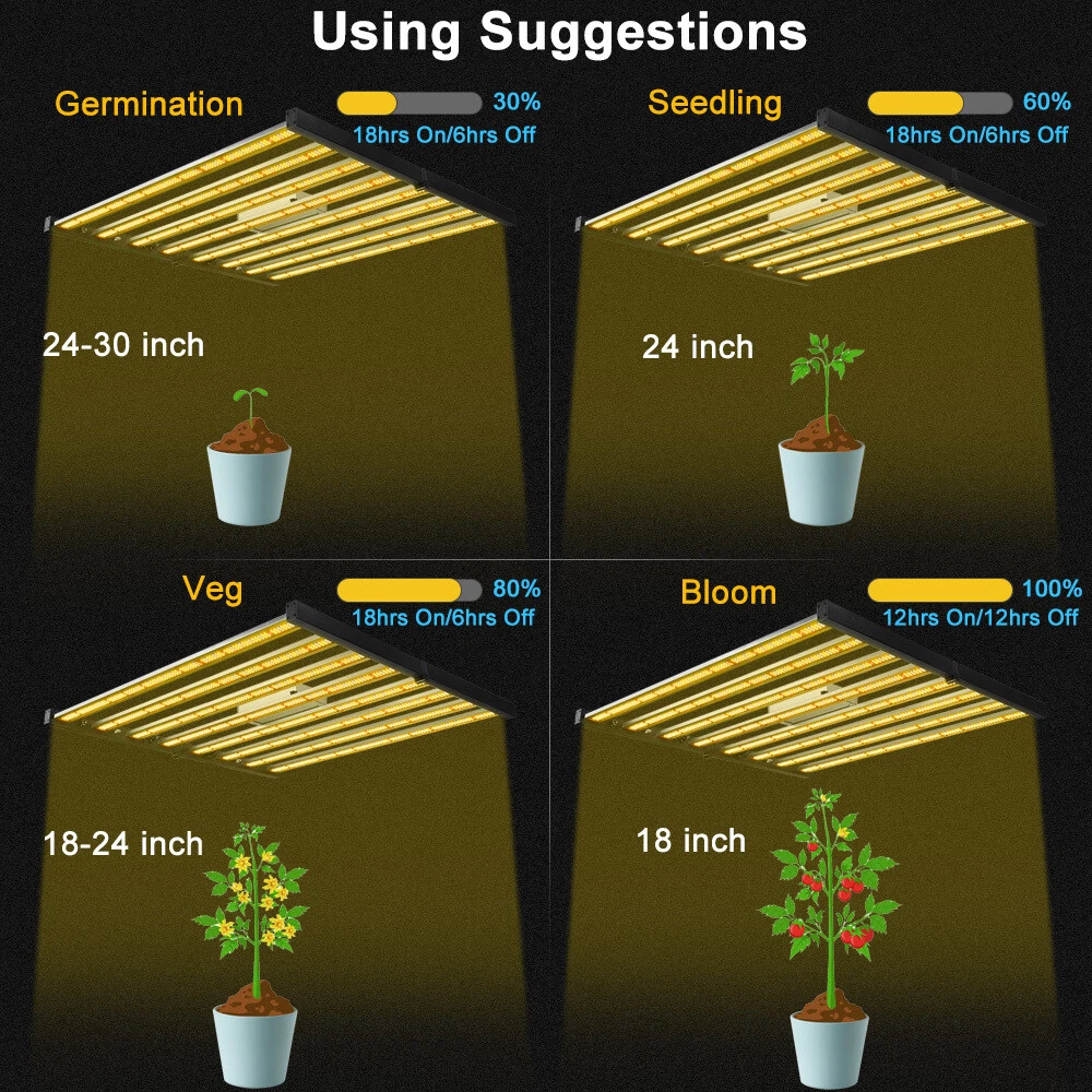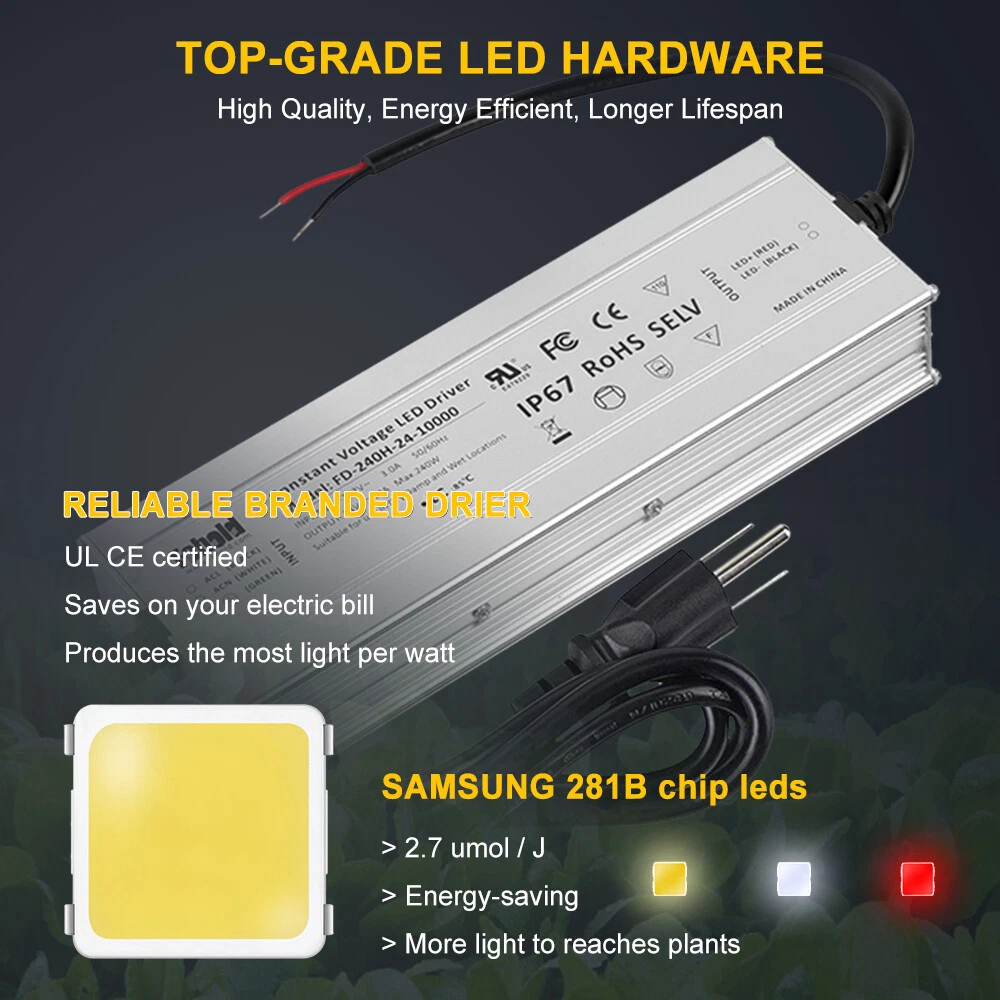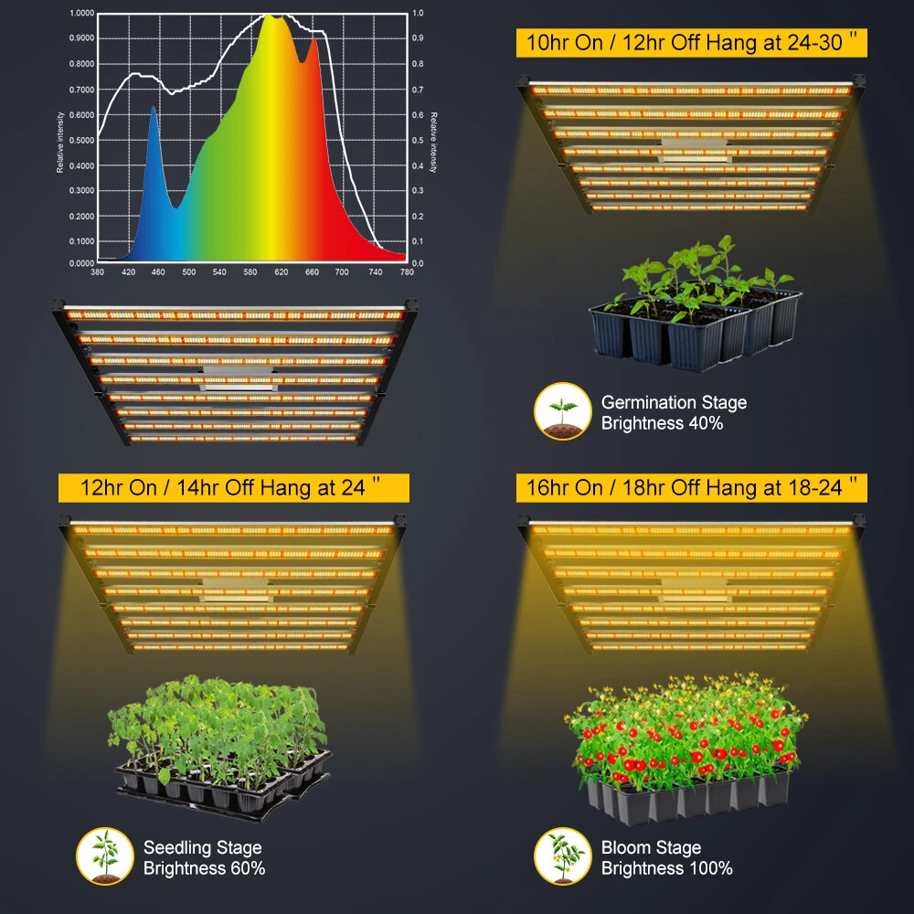 Home Muti-bar series Foldable led grow light series Flat panel lamp series Personal use led grow light Store Categories cree cob grow light muti bar grow light hood grow light QB grow light 30w 3 head grow light Folding series grow light Foldable Samsung LED Grow Light Bar Dimmable 640W Full Spectrum Growing Lamp 640W 8bars 2592 LEDs INDOOR GROW LIGHTS spider bar light is a full-cycle spectrum optimized for rapid growth and complete plant development. Tailored for growing plants from initiation to senescence (germination, clones/cuttings, mothers, vegetative and flowering applications) in indoor environments. With a CRI rating of 85, LED offers a beautiful work and research environment with vivid colors and greater contrast to study the health of your crop. The high fixture efficiency of 2.8 μmol s-1 per Watt enables you to finally leap ahead in reducing your HVAC requirements compared to HPS/MH lighting. The high efficiency but low powered LED configuration with 8 LED bars spread out reduces the temperature of the LEDs, increasing the output and improving their light maintenance. The spider light bar has a built-in knob for dimming the fixture between a range of 200 - 500 Watts. Set the perfect amount of power for your plant's needs without plugging in another piece of hardware. There is a setting on the knob to turn to EXT for external for those who wish to plug their controllers into the light. About this item DESCRIPTION 🌱 Balanced spectrum For Full-Cycle Growing 🌱 Low Engergy Use & Virtually No Heat Output 🌱 Increased Yield & Crop Quality 🌱 Simple Plug and Play Set up & Use 🌱 Passive Cooling Allows For No fans - Less Moving Parts Means More Longevity 🌱 Perfect For Keeping your favorite Mother plants / Strains Available 🌱 LOADS CHEAPER to RUN : High Energy Efficiency with1360 μmol/s, only consume 640w, but has same yield as fake 2000W Blurple led growing lights. 🌱 SAMSUNG LM281b - the highest light output LED available at present, create the better canopy light penetration, get 40% higher yields with less energy compared with other red blue lights. 🌱 SUNLIGHT SPECTRUM : Blue,White,Red and IR (660-665nm,3000K,5000K and IR 760nm), provide everything plants desired in the natural sunlight, turn your seeds into your own supply, produce beautiful high yielding plants. Easy to see the true colour of your plants. 🌱 PLUG & PLAY : No assembly required. Right out of the box your LED grow light is ready to use. 🌱 DIMMABLE & Daisy Chain : dimming precisely by an external dimming knob, which makes it adaptable to different growing periods for your plant. The daisy-chain function allows you to connect up to 15 LED plant lamps through the RJ14 port, or control over 100 lights by purchasing an external 0-10V controller, especially beneficial for large area of indoor growing and commercial planting. 🌱 Marvelous Customer Service :Phlizon provides truly 3-5 years standard warranty ! If there is any question or concerns, please feel free to Email us. We will help you with great pleasure! Specifications: - Power: 640W PPF: 1360 μmol/s Spectrum: Full Spectrum LED Chip: Samsung 281b Number of leds: 2592 pcs Core Coverage:6ft x 6ft Average Yield:2.8 g/watt Led bar pcs: 8 bars Input Voltage: Autosensing 100~277 V Mounting Height: >15cm Above Canopy Thermal Mangement: Passive Lifetime: 50000hrs Power Factor: > 90% Colour Rendering Index: 90ra Ambient Temperture: -40℃~40℃ Storage Environment: -40℃~85℃ RH10%~95% Package Size:114*65*19cm IP rating: IP65 Gross Weight: 20.85kg Light Size: 41.7*40.8*3.9inch (1060*1040*1000mm) Delivery: Discreet plain box Package includes: - 1 x 640w LED Lighting -1 x Hanging Kit -2 x Rope hangers -1 x US power cord Make Planting Easier Phlizon provides you with the premium hydroponics equipment and services. It is our commitment to be the best indoor gardening and hydroponic store that you can trust. Professional indoor gardening and hydroponic manufacturer High quality control standard Get the Best Results with Phlizon LED Grow Light 2021 Latest Design LED grow lights are a relatively new type of grow light which produce better quality buds and bigger yields, while using less electricity and producing less heat than traditional grow lights. LED yields are improving every year and there are now many reliable models of Phlizon LEDs that have been proven for growing high yields indoors by various growers in the industry. Unlike a lot of other brands, Phlizon LED grow lights have both a heatsink and built-in fans to help keep grow lights cool. Max coverage area: 6.2x6ft Power Consumption: 640Watts Voltage: 100-277V Energy Efficiency: 2.9umol/J Package include:1x LED grow light; 2x hangers, 110V US power cord why choose this light? Balanced spectrum For Full-Cycle Growing Low Engergy Use & Virtually No Heat Output Increased Yield & Crop Quality Simple Plug and Play Set up & Use Passive Cooling Allows For No fans - Less Moving Parts Means More Longevity Perfect For Keeping your favorite Mother plants / Strains Available Q&A: 1.What LED Light Size Do You Need? Firstly,you need to calculate the exact size of the grow tent space.When growing plants,our research data shows that there is minimum 50 watts of light per square foot of grow space at the stage of flowering. Therefore, you need to calculate the square footage ( length x width ) of your grow space. Then multiply this number by 50w to get the power of grow lights that you should buy. 2.How Far Should LED Grow Lights be from Plants? Our grow lights usually comes with the recommend guideline,but it doesn’t means that you need not to close observation the plants after you fixed the light on the recommend height.you should start with the guidelines suggested by your grow light manufacturer, usually 18” to 24” away from the plant.Then, keep a close eye on your plants for signs that the light is too close or too far away.If the leafs of plants become bleaching or yellowing ,especially o