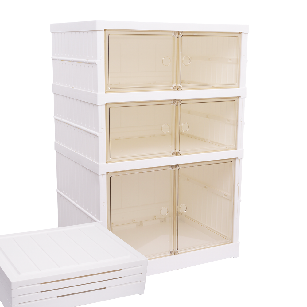 Foldable Shoe Cabinet Dust Proof Shoes Storage Organize Shoes Organizer 3-Tier -